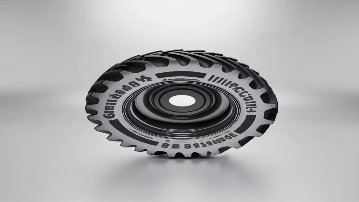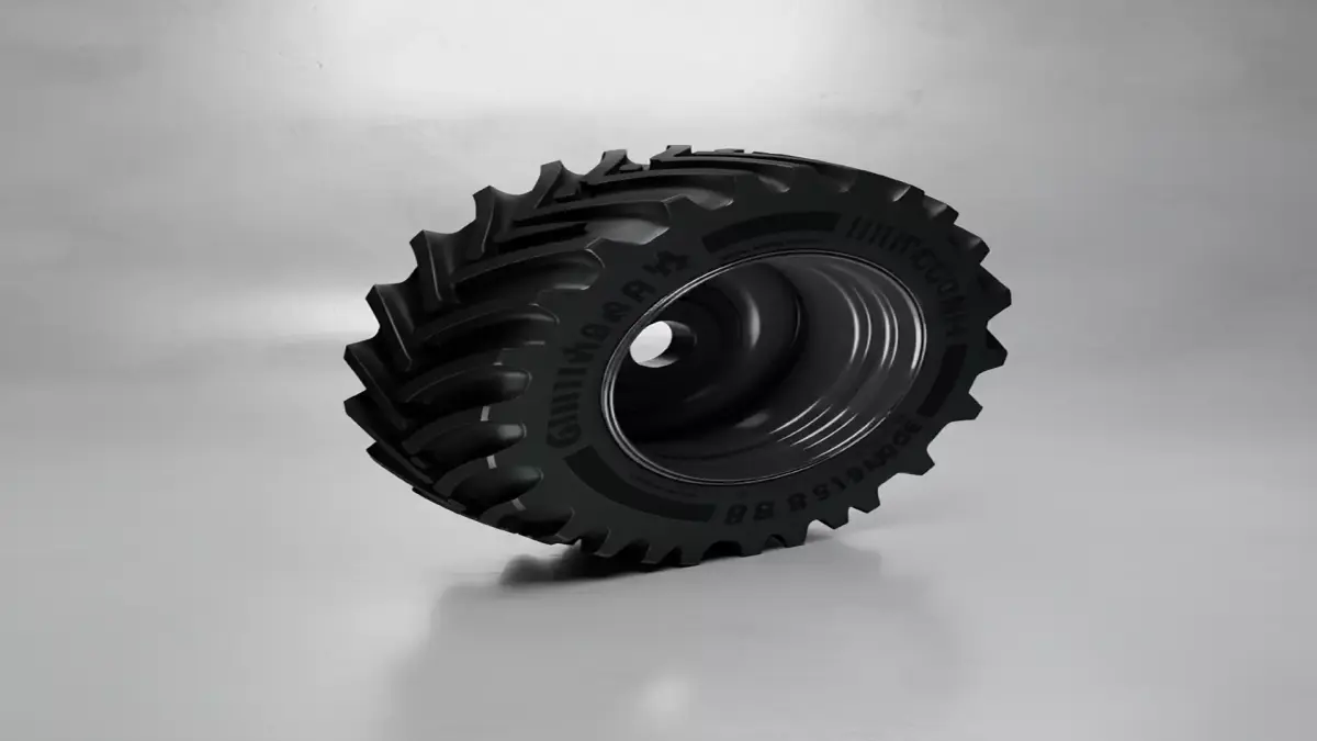 The tire showcases deep grooves and realistic rubber detailing, while the rim includes metallic bolts and a modern industrial design. Suitable for both close-up renders and real-time applications.