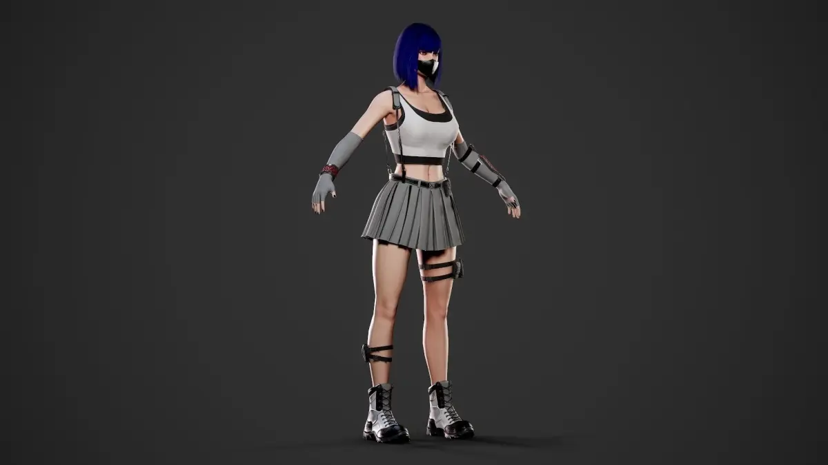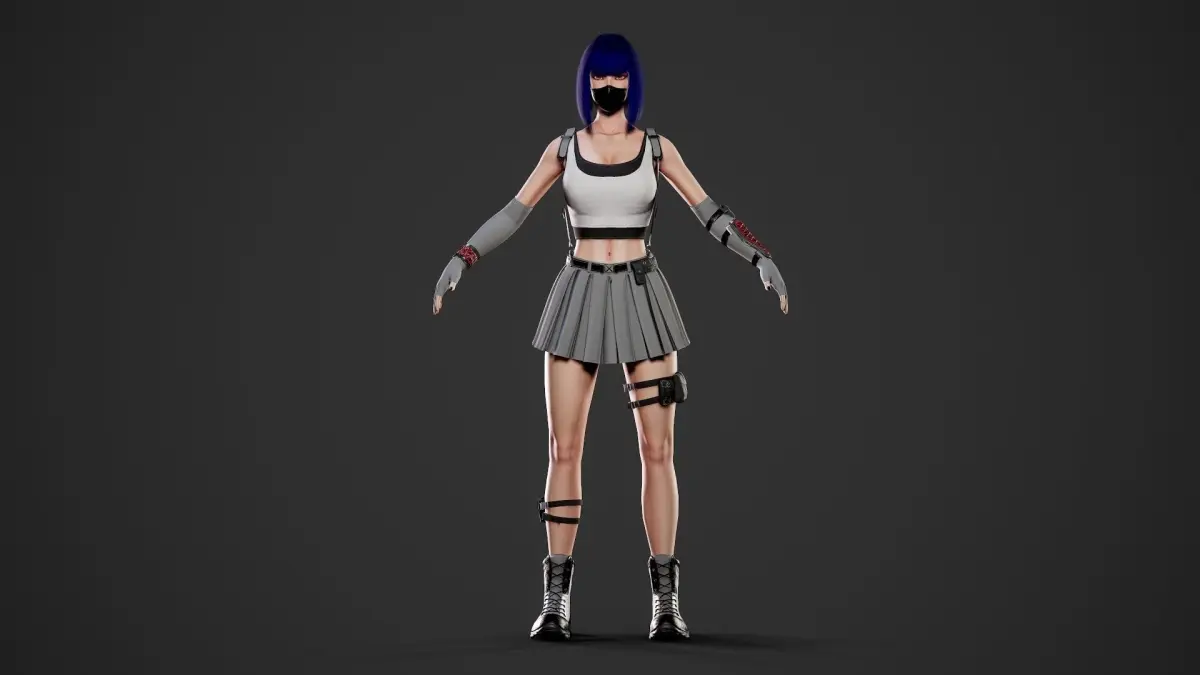 7 Texture sets - Body, Face, Cloth, Eyes, Cornea, Hair, Pistol