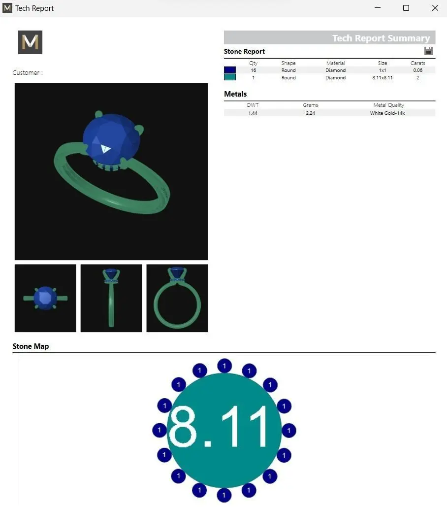 Diamond information, weight estimate, ring size information already attached on image