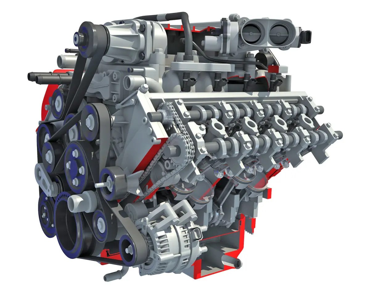 High quality 3d model of cutaway and animated V8 engine.Model is high resolution and perfect for close-up detailed renders.Scene includes all parts as seen on the previews.