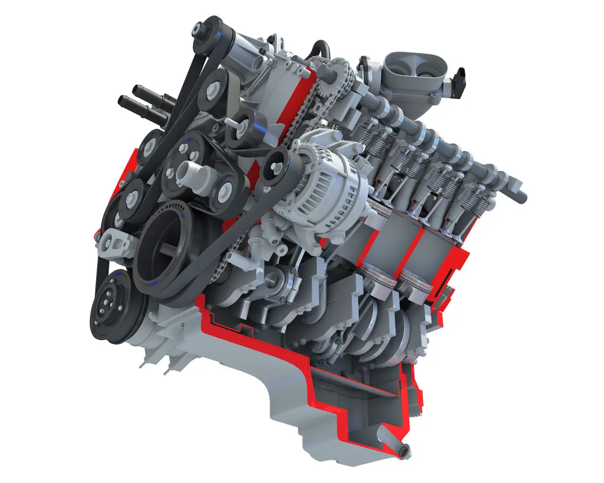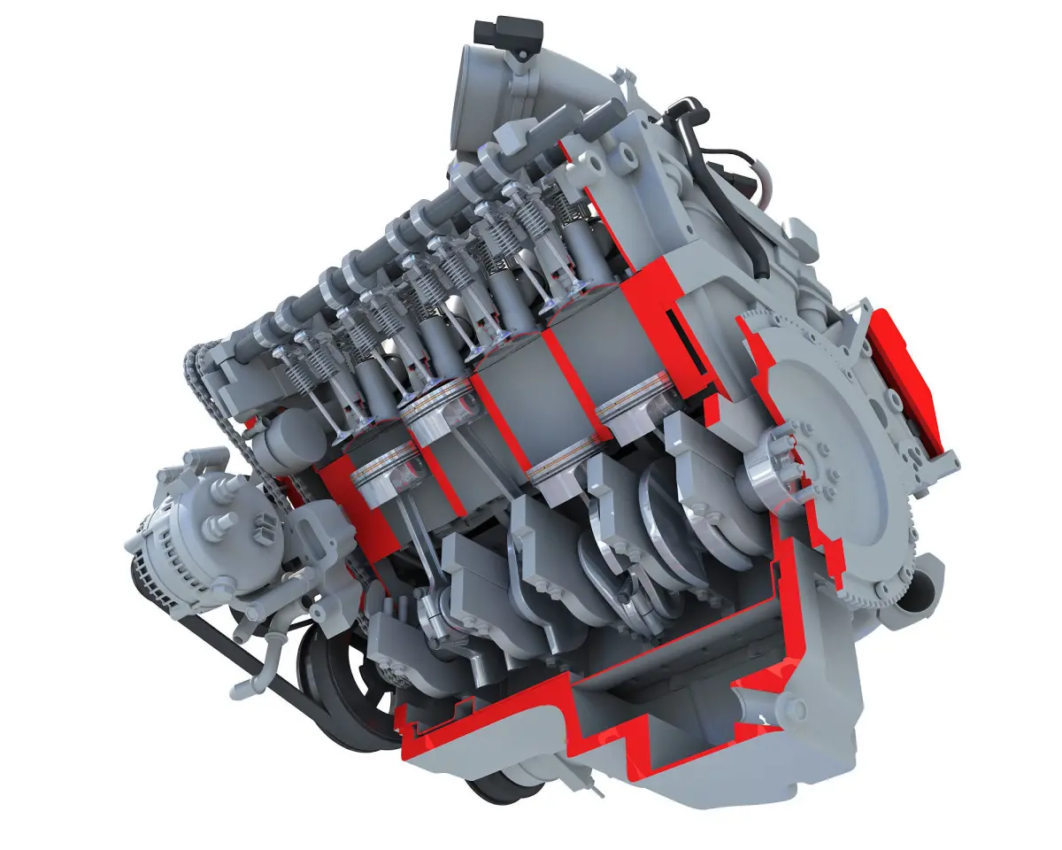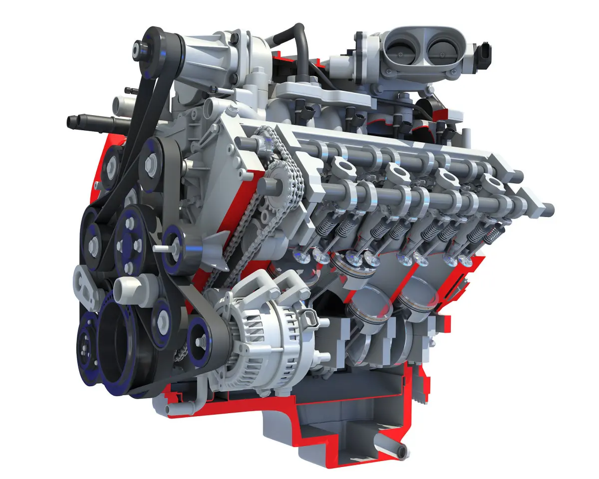 Detailed 3d model of sectioned V8 engine.Two *.max files included: Standard and V-Ray-materials.All colors can be easily modified.All previews rendered with 3ds max and V-Ray.
