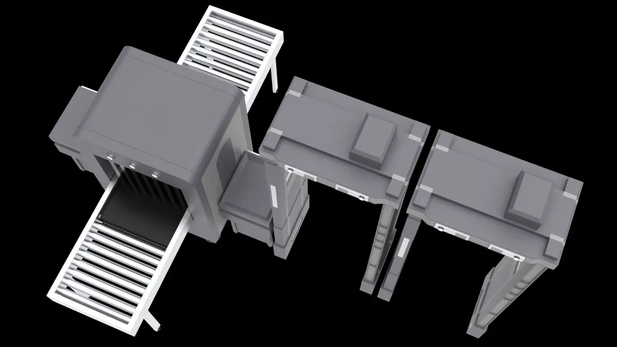 Low-poly security checkpoint model including an x-ray scanner and a walk-through metal detector.Ideal for airport, government building, or military simulation scenes.Clean topology, no textures or materials included – ready for custom shading or baking.Suitable for real-time use (games, VR, AR, architectural visualization).