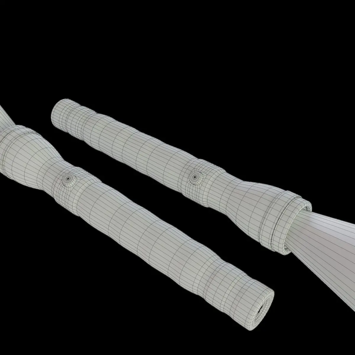 Perfectly scaled Blender3D Model of a police and / or security flashlight with a rought grip and smooth body. With displacement textures and icon and logo textures to be changed to any desired image file. Designed for easy CG projects. 3.5cm Radius and 20cm High