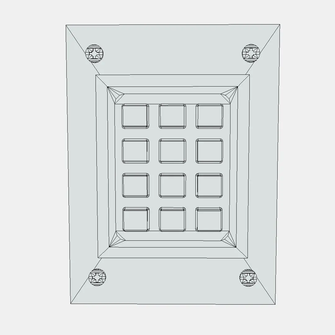 Model: KeypadMedia Type: 3D Model Geometry: Quads/Tris Polygon Count: 988 Vertice Count: 1376Textures: Yes Materials: Yes Rigged: No Animated: No UV Mapped: Yes Unwrapped UV's: Yes Non-Overlapping