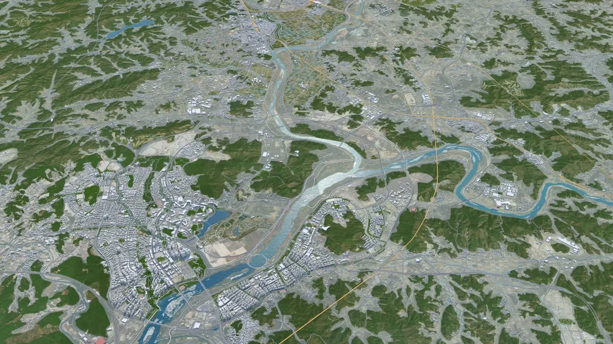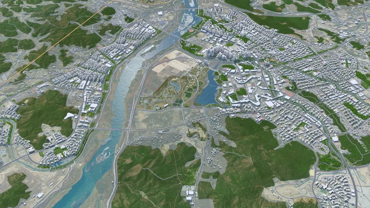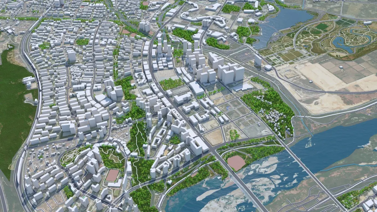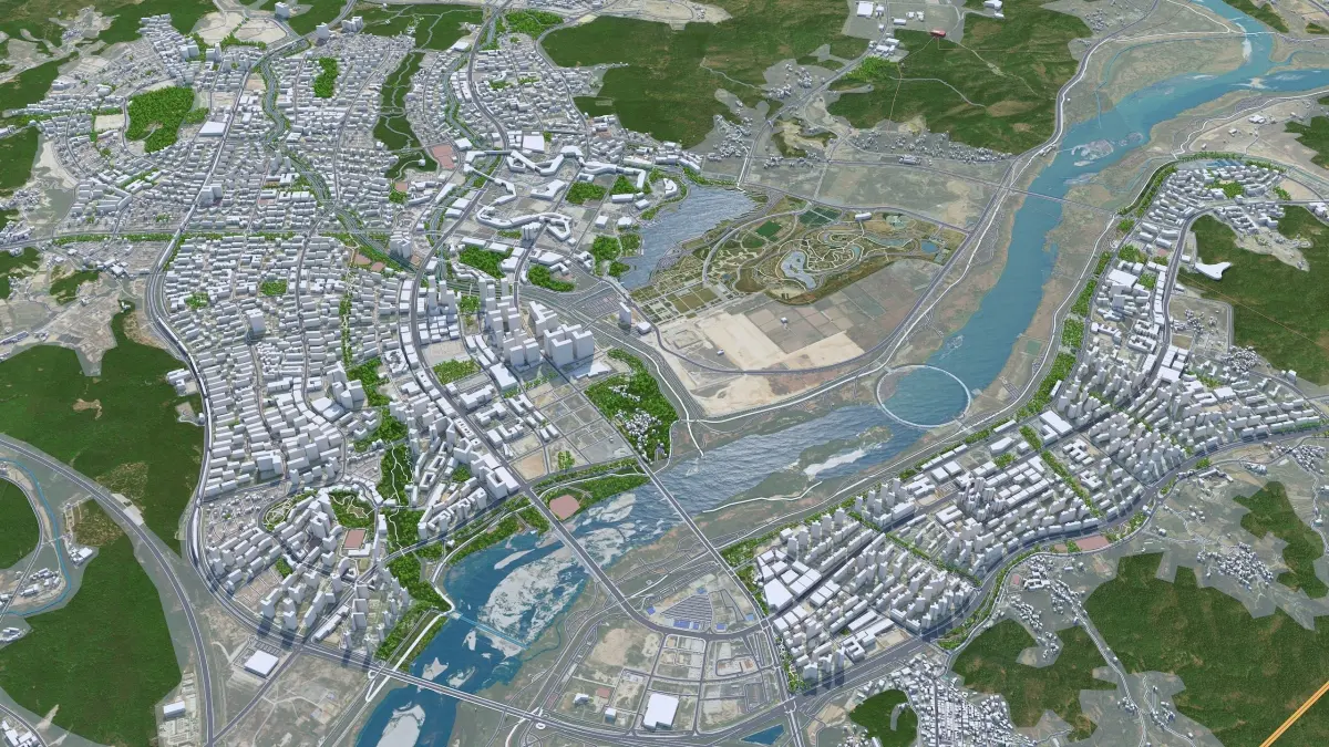 Accurate 3D city model and its surrounding area based on GIS data Year 2022
