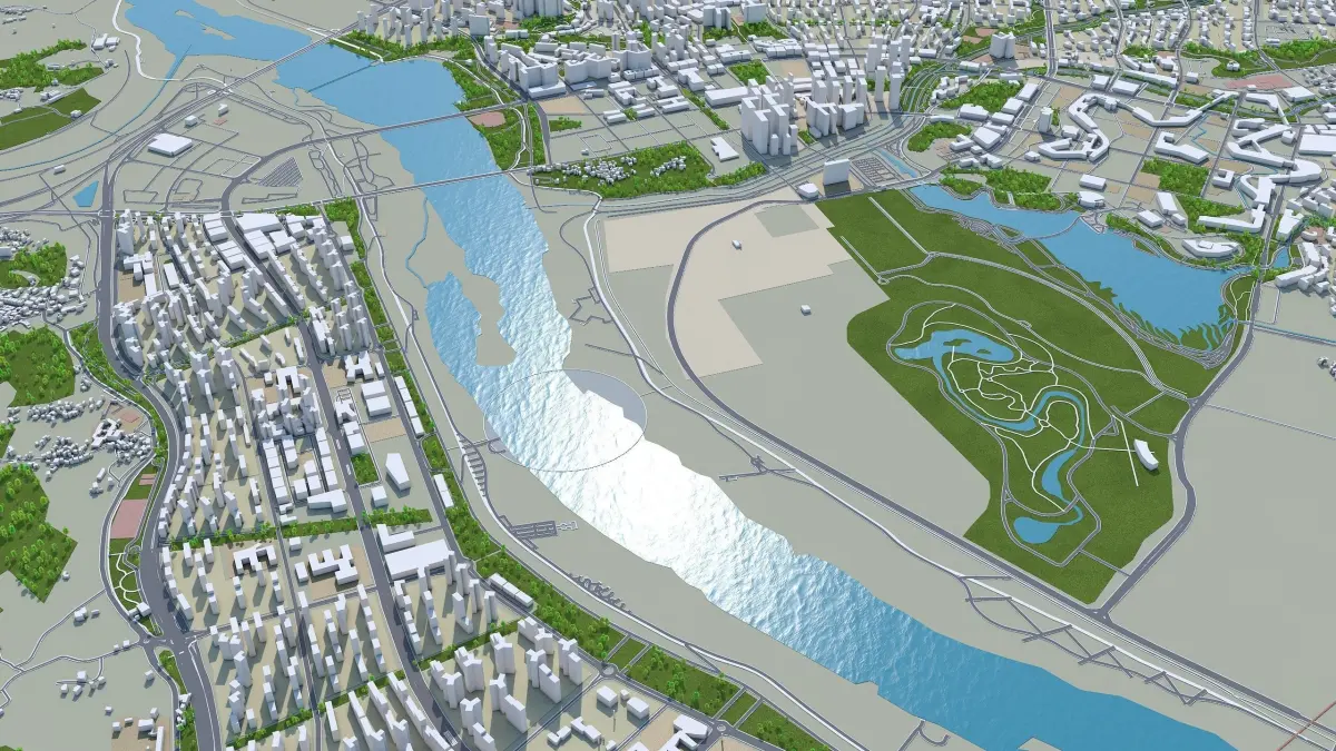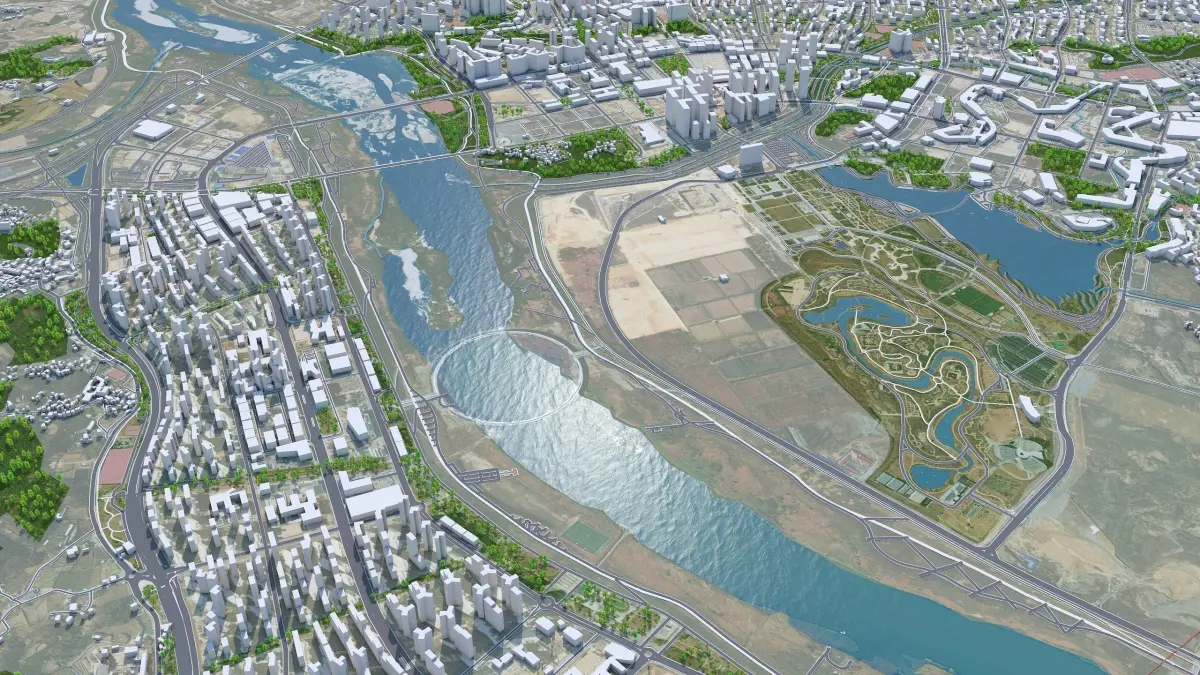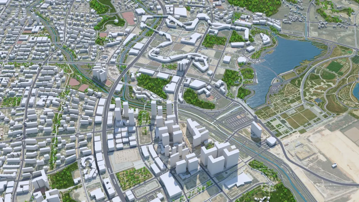 Accurate 3D city model and its surrounding area based on GIS data Year 2022