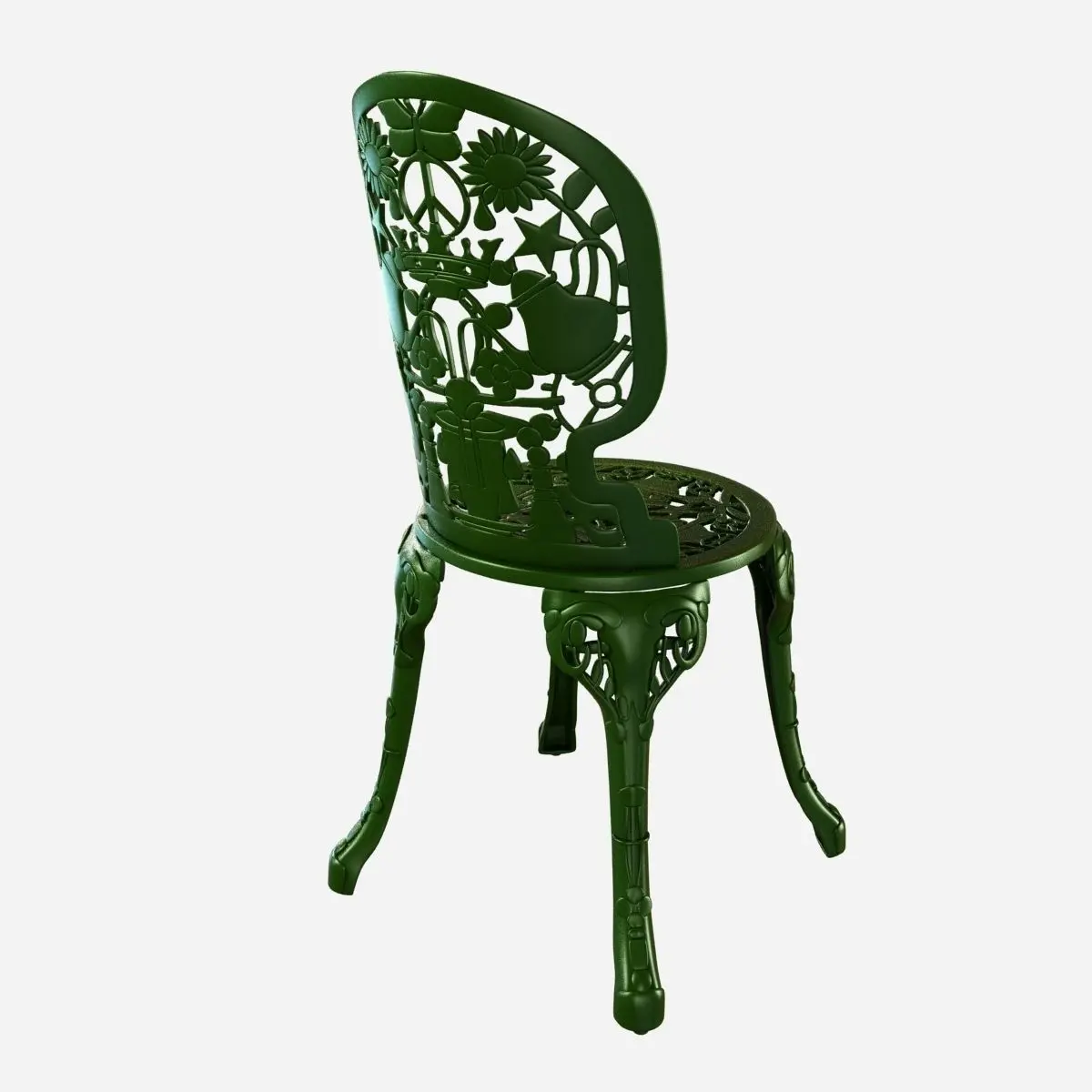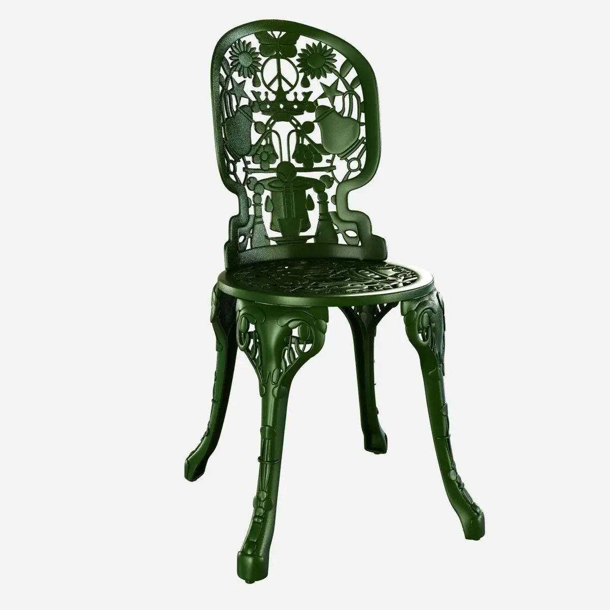 SelettiINDUSTRY | ChairAluminium garden chairDesign By Studio Job (2015)Industry CollectionSeletti meets Studio Job through an unexpected project that integrates the accessible design of the Italian brand to the unmistakable style of the creative duo from Antwerp and Amsterdam. Industry Garden Collection is an aesthetically valuable and creative collection for the outdoors.From this collaboration a set of chairs, a round table and an oval table were born, with more typologies to come later in time. The furnishings are made of cast aluminum and are available in different colors. Special design features ensure that the pieces are lightweight and can be disassembled to ease the transportation.