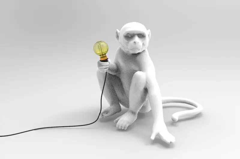 This OBJ file contains a high-quality 3D model of the SELETTI Monkey Lamp. The SELETTI Monkey Lamp is a contemporary lighting fixture designed to bring a playful yet elegant touch to any space. The lamp features a realistic depiction of a monkey holding a lightbulb, with intricate details capturing the charm and character of the animal.