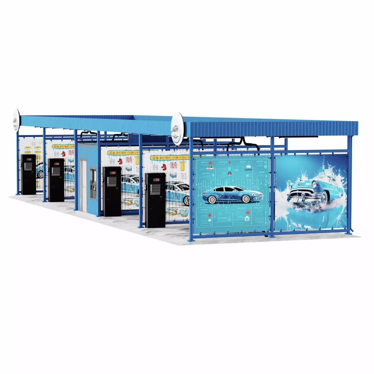 High-quality 3D model of self-service car wash featuring furniture item called self-service car wash for intorior or extorior decoration. The download includes the native Blender file with full material and lighting setup, as well as OBJ and FBX exports for compatibility with other software. Both high-poly and optimized low-poly meshes are provided, along with pbr textures (Color, Normal, Roughness, Displacement, and Subsurface Scattering). All assets are UV-mapped and ready for use in rendering, animation, or real-time projects.