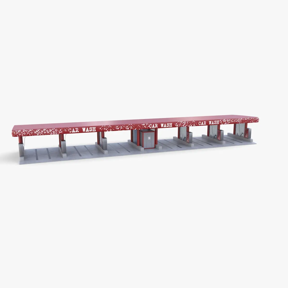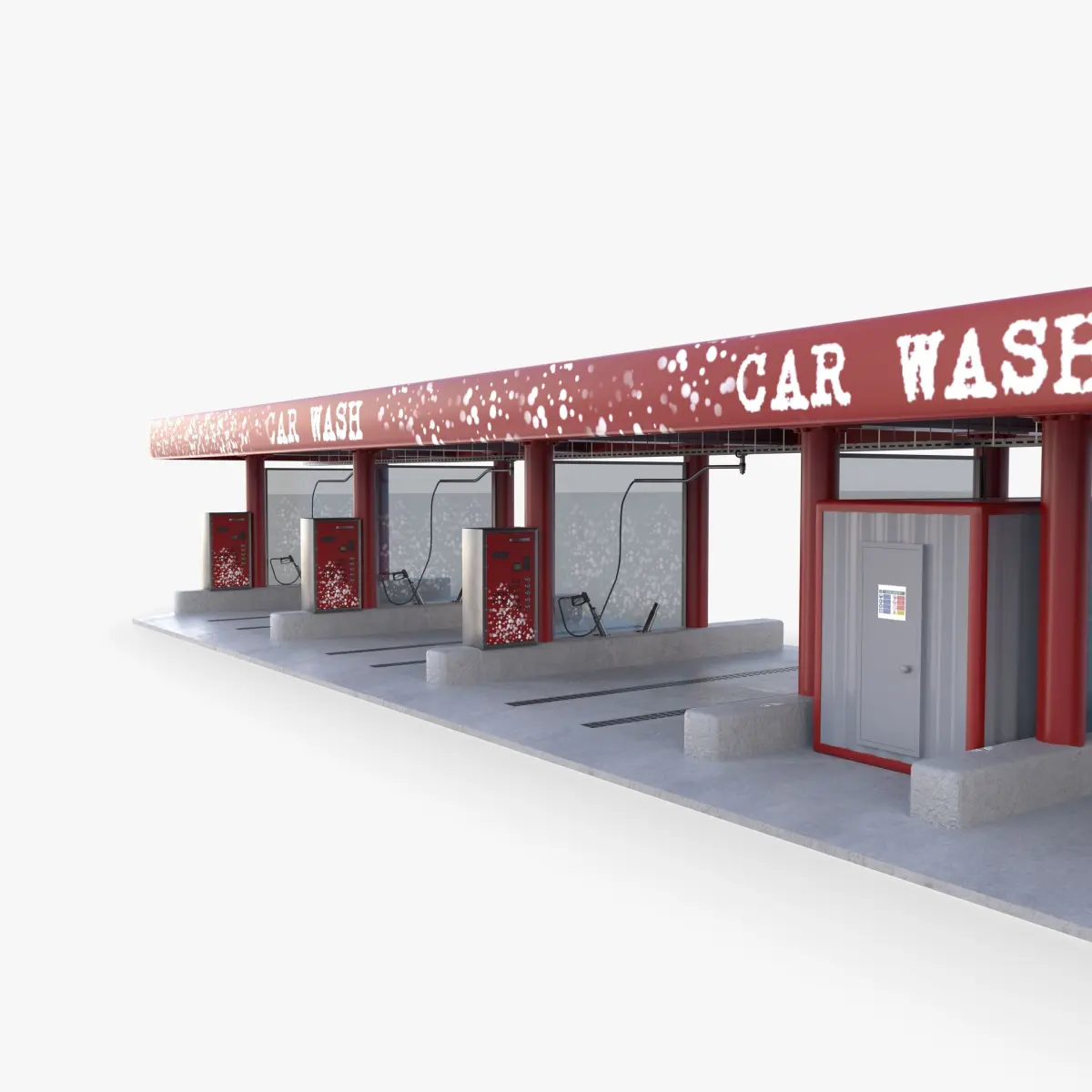 Highly detailed Self service car wash 3d model rendered with Cycles in Blender, exactly as seen on attached images.