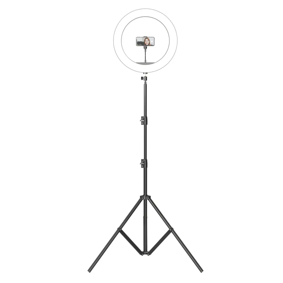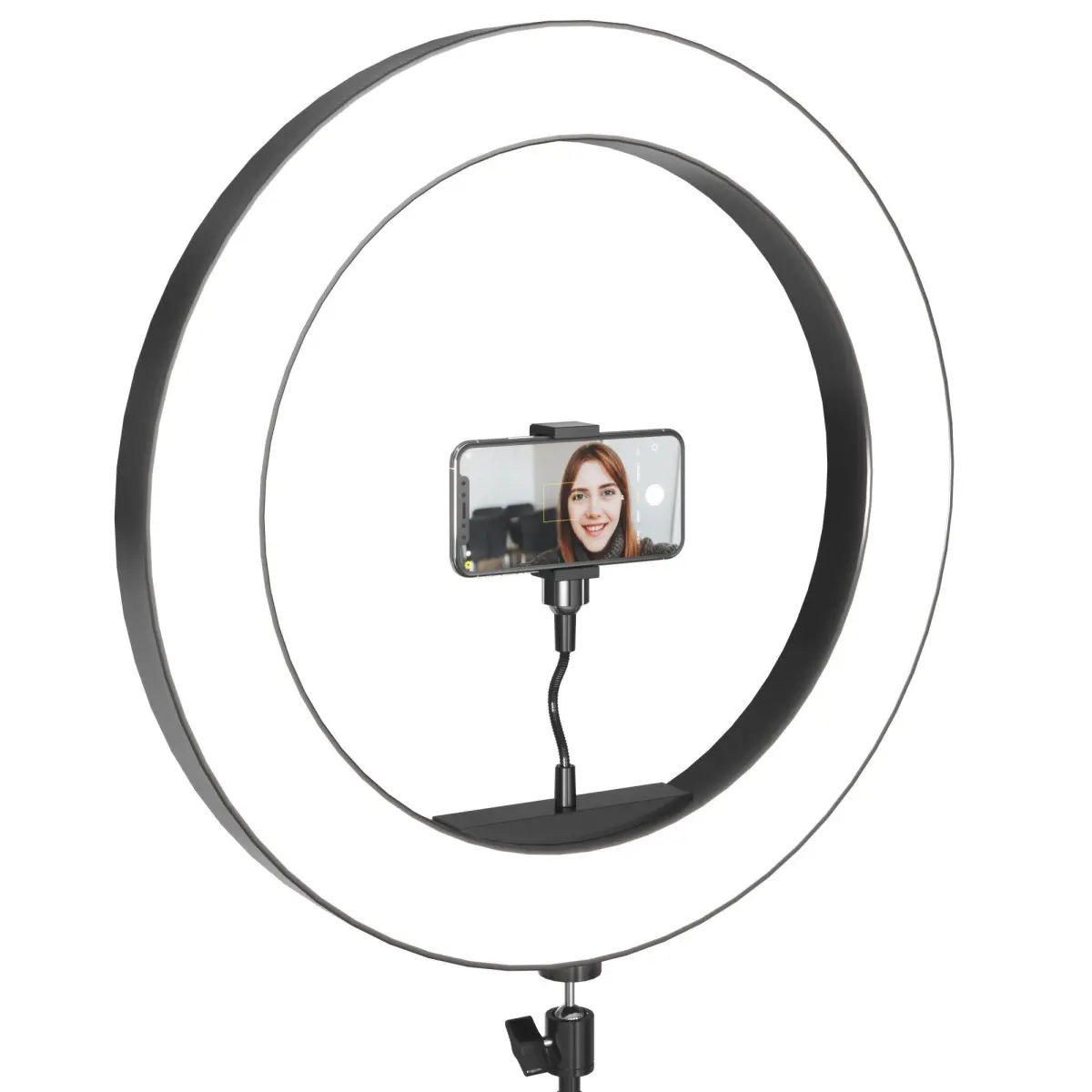 Tripod lamp for selfies and bloggers with installed Iphone