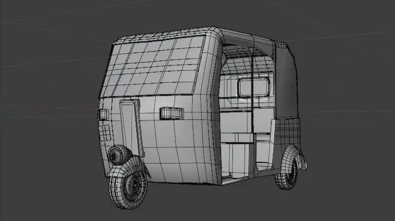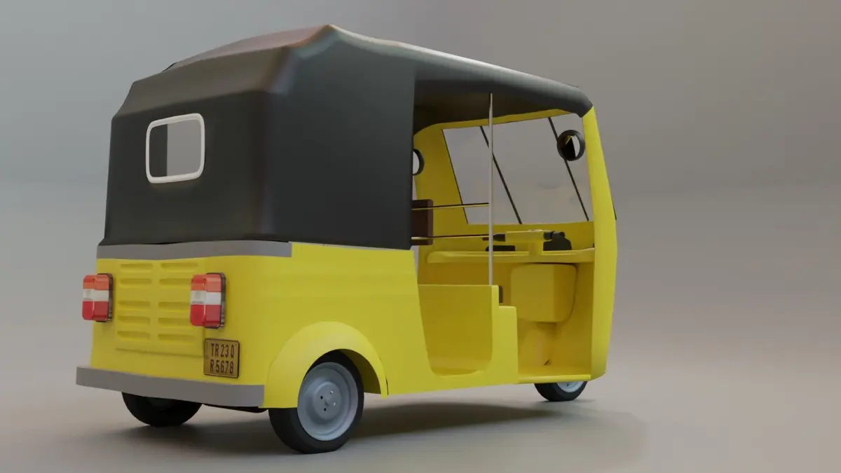 Semi realistic low poly Auto Rickshaw 3d Model Created inside Blender