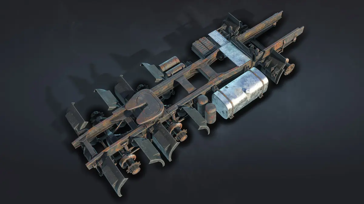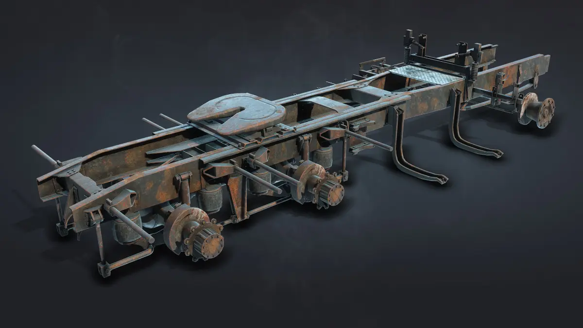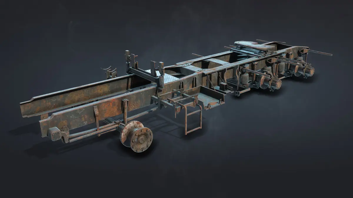 Game ready 3d-model of old rusty chassis frame of semi-trailer truck.