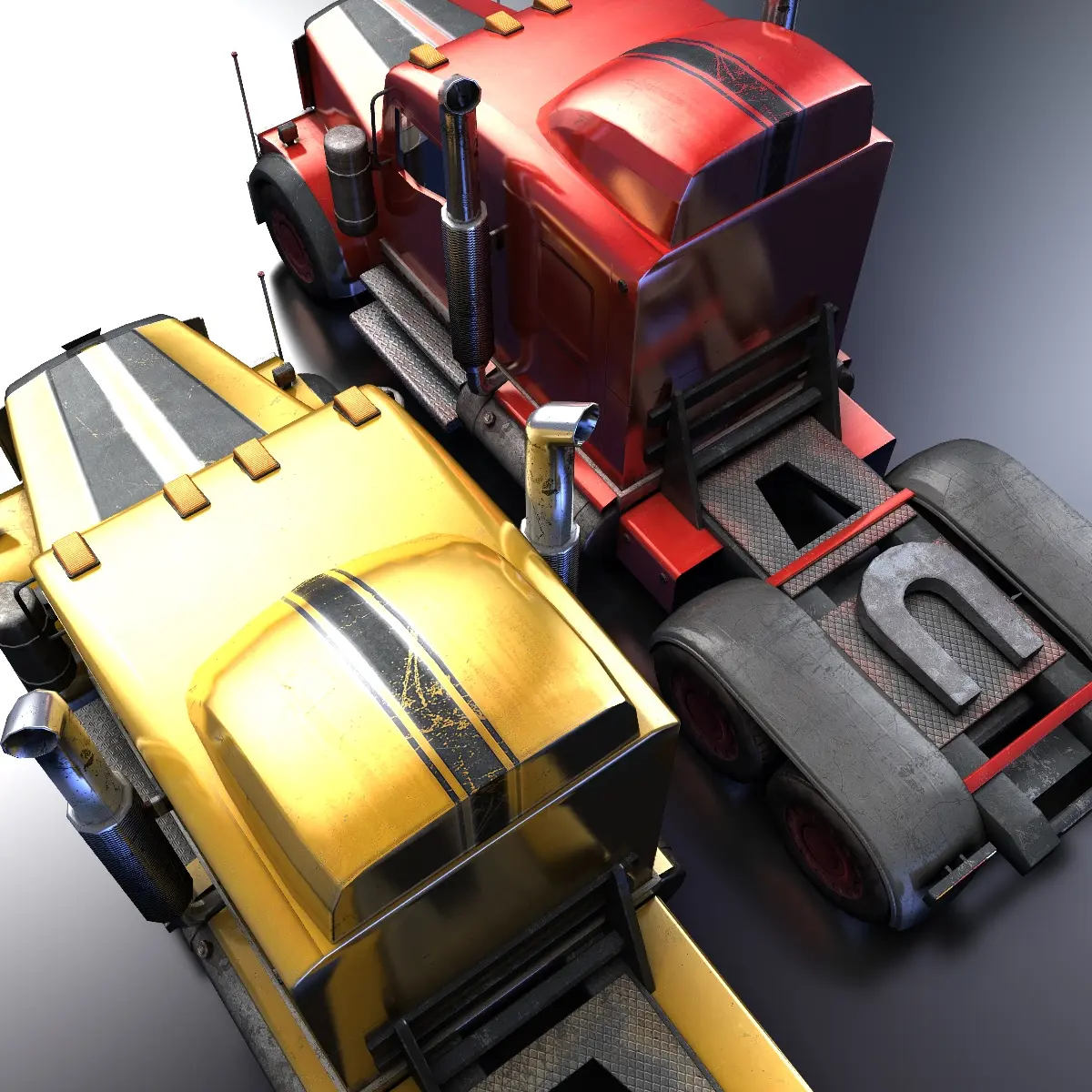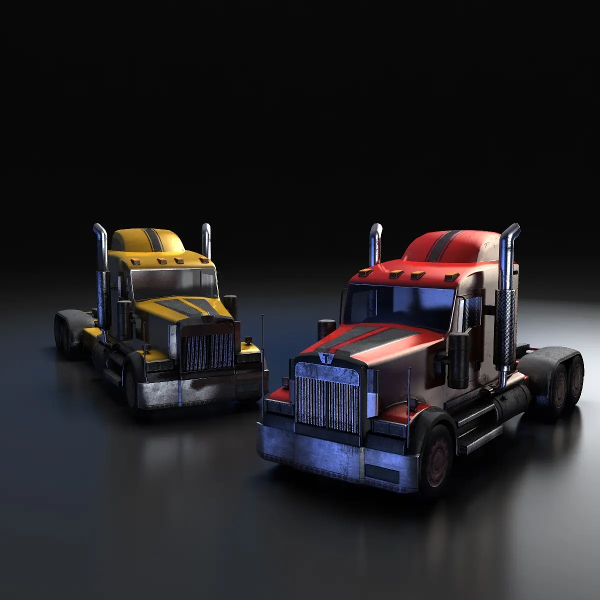 Ready to be used in most 3D apps and game engines. High-quality 2048x2048 TGA textures (color, specular, normal) separately for trucks and trailers. Material is created in the old version of Vray for 3DsMax. For any other software be sure to create your own materials.