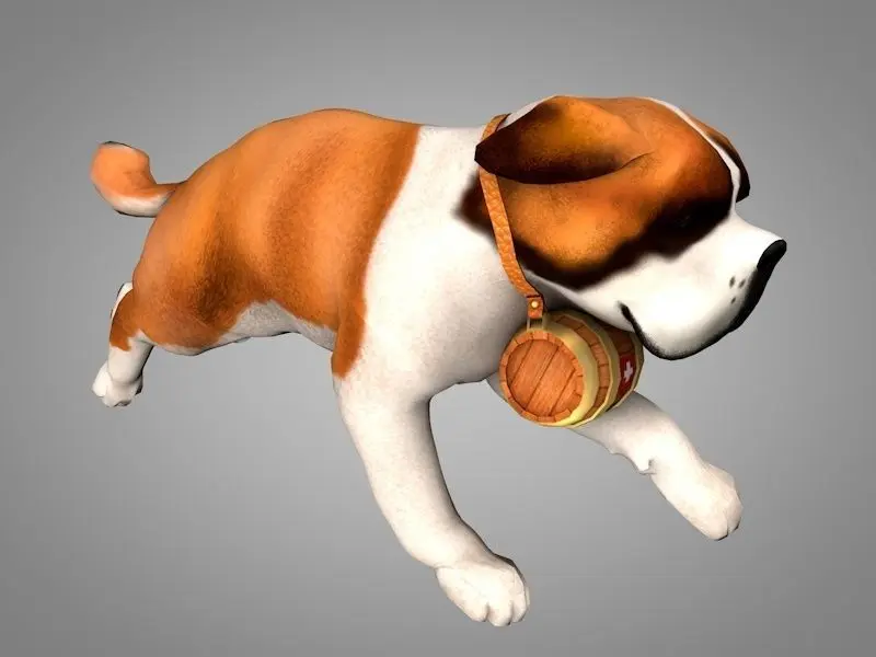 The model has 4096x4096 texture map and 4 animations: walk(1-21 frames), run(23-39 frames), bark(41-65 frames), idle/breathe(67-75 frames)