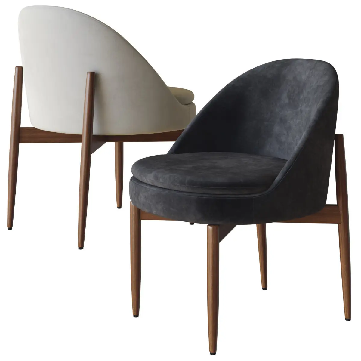 Sendai, this line of furnishing pieces consists of a small sofa, an armchair, a lounge armchair and dining and lounge little armchairs.Like slender trunks, the elegant, polished legs, in Canaletto walnut solid wood stained Light Brown, or Liquorice lacquered ash, rest on the ground, lifting the enveloping upholstered body and creating a soft rhythm of vertical lines.