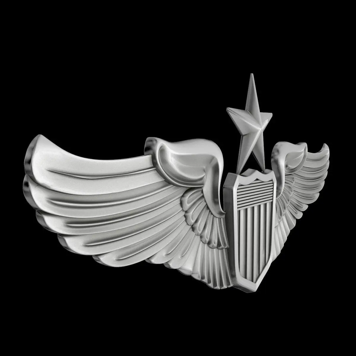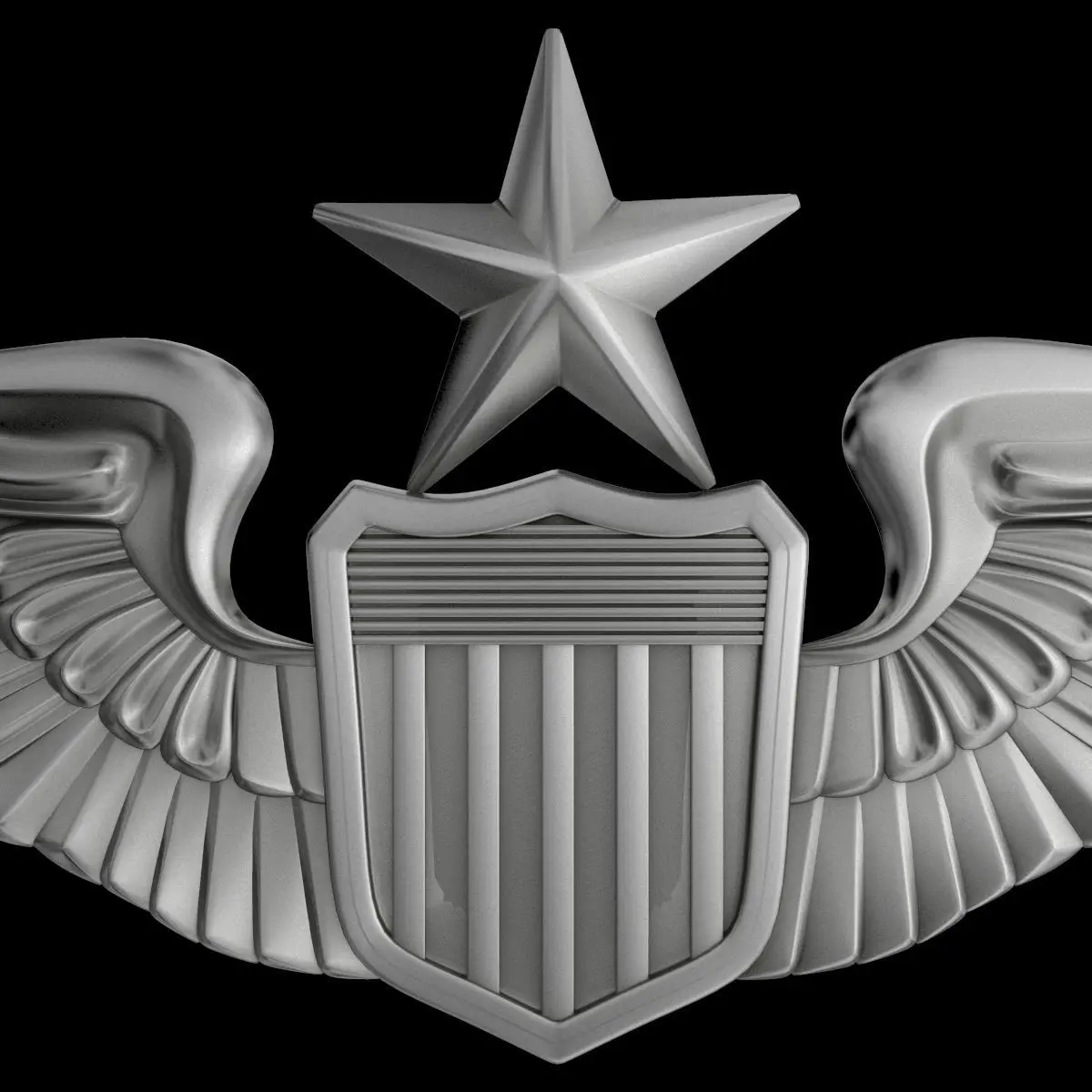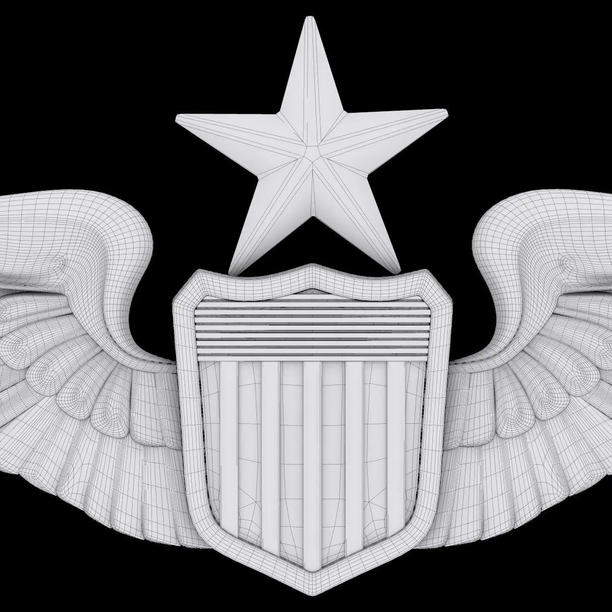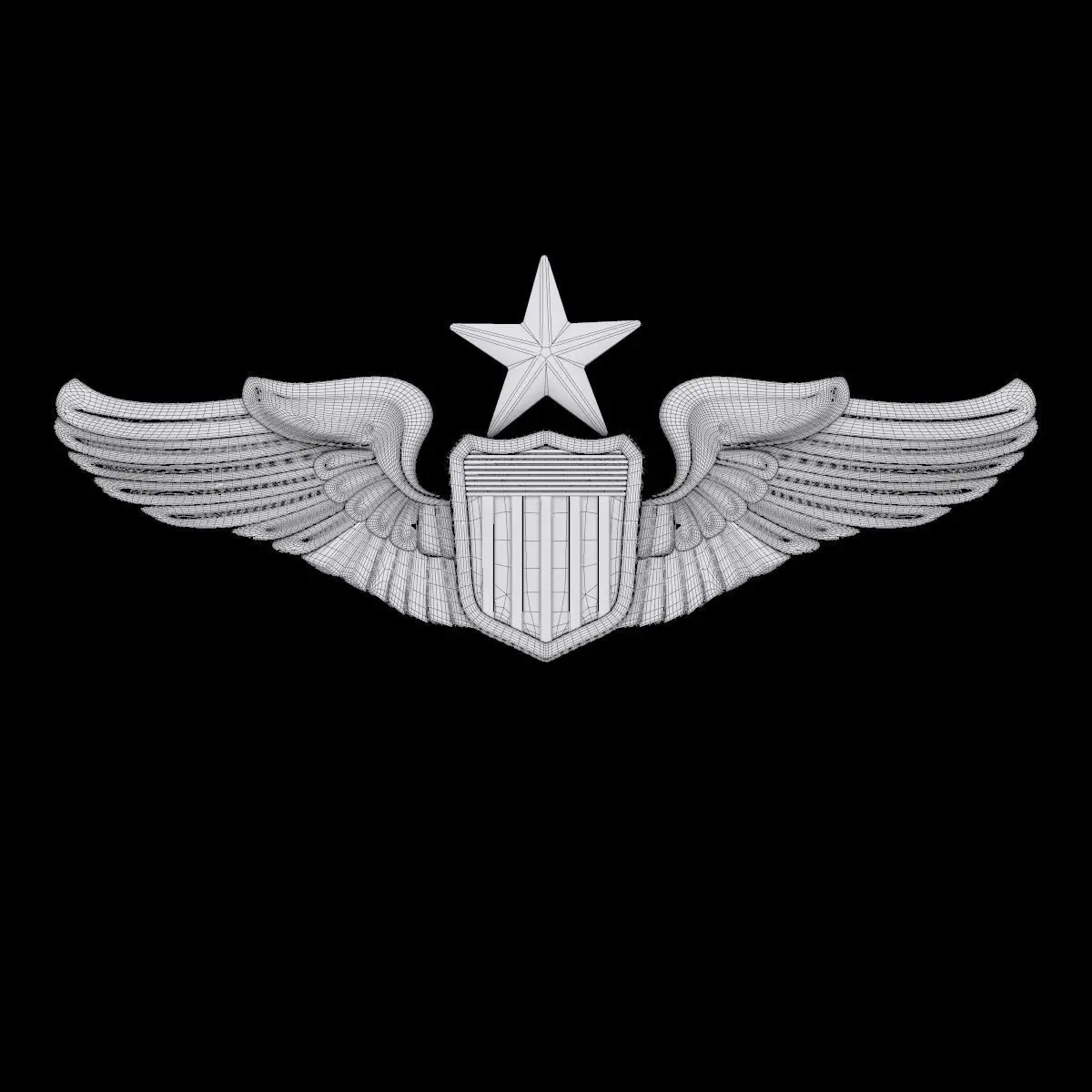 US Air Force Senior Pilot Wings BadgeHigh Poly, textured model of a USAF Pilot Badge.Mental Ray materials are included.Sbdivision level 0 only in 3dsMax scene available.In OBJ, 3ds and FBX subdivision level 2.