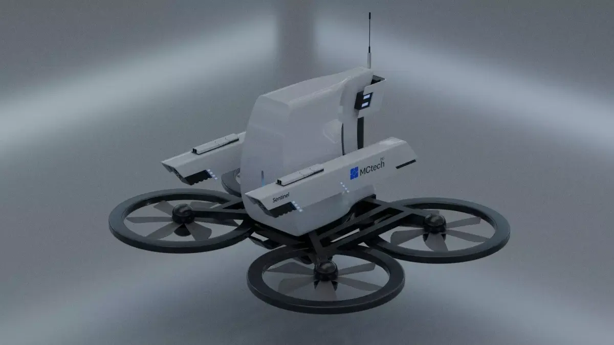 Created with a clean, sci-fi-inspired aesthetic, this model is perfect for use in animation, games, VR/AR, promotional visualizations, and concept development. The model bears the MCTech Inc. branding and the name Sentinel, highlighting its intended use as a watchful aerial guardian.