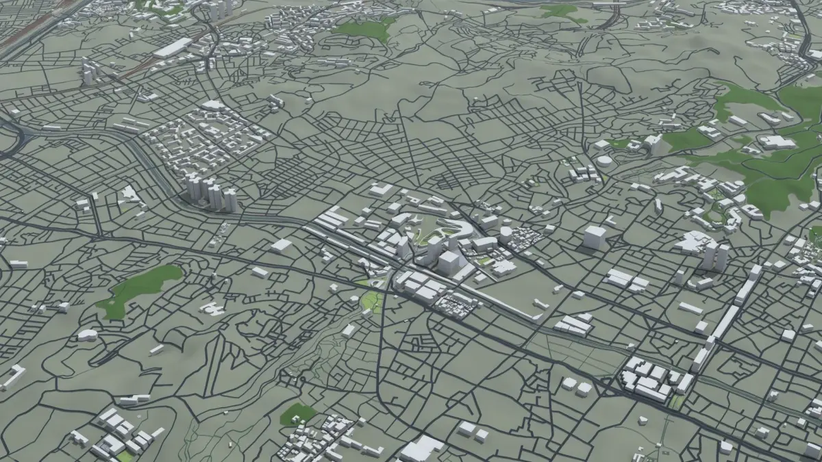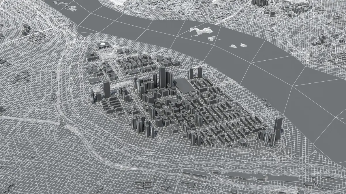 Seoul South Korea. Schematic model of the capital city of South Korea. Thousands of individual buildings in their correct real-world locations, Model covers and area approximately18km x 14.5km, over 261 square km. Layers include buildings, waterways, roads, rail and green spaces. Overlay texture included that shows place names.