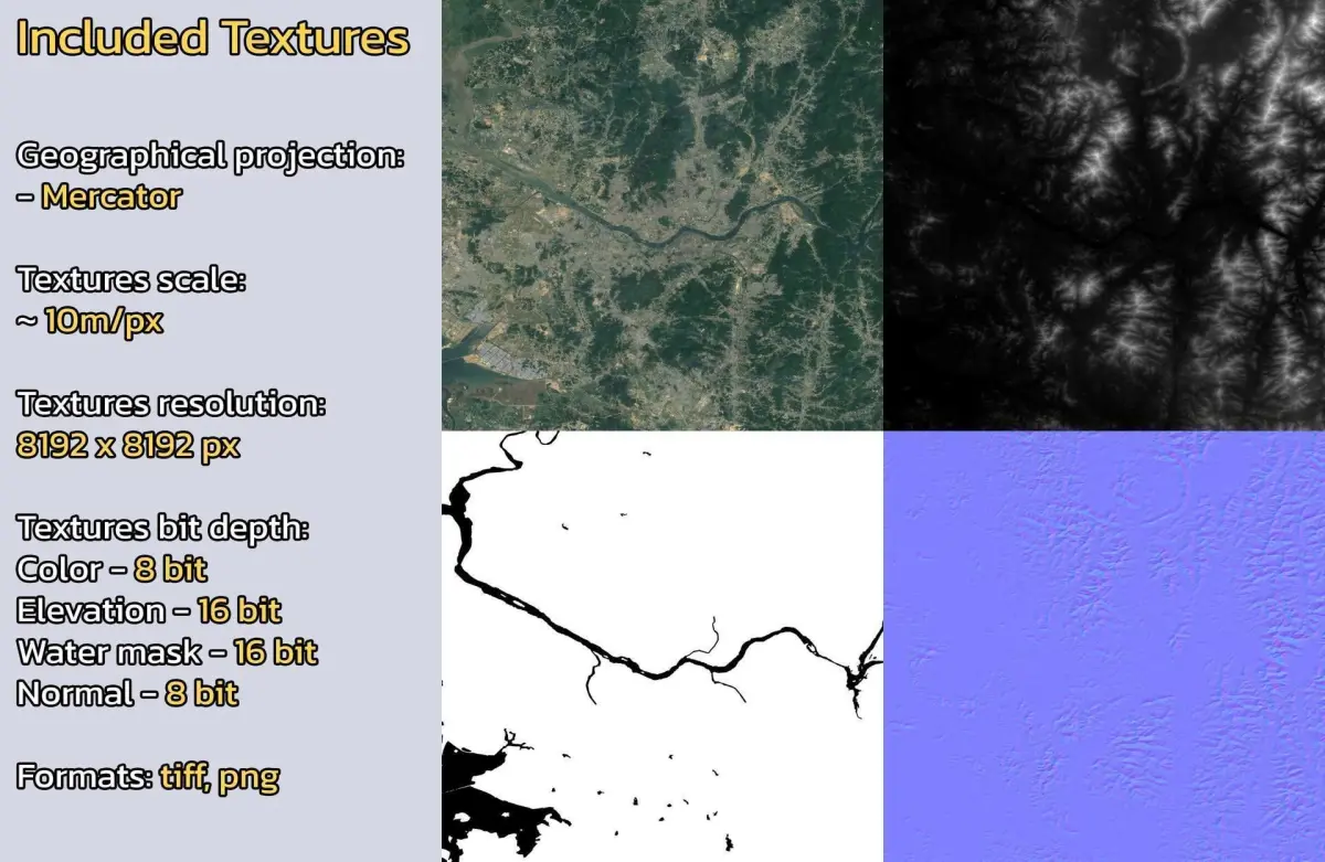 - Textures resolution: ~10m/px