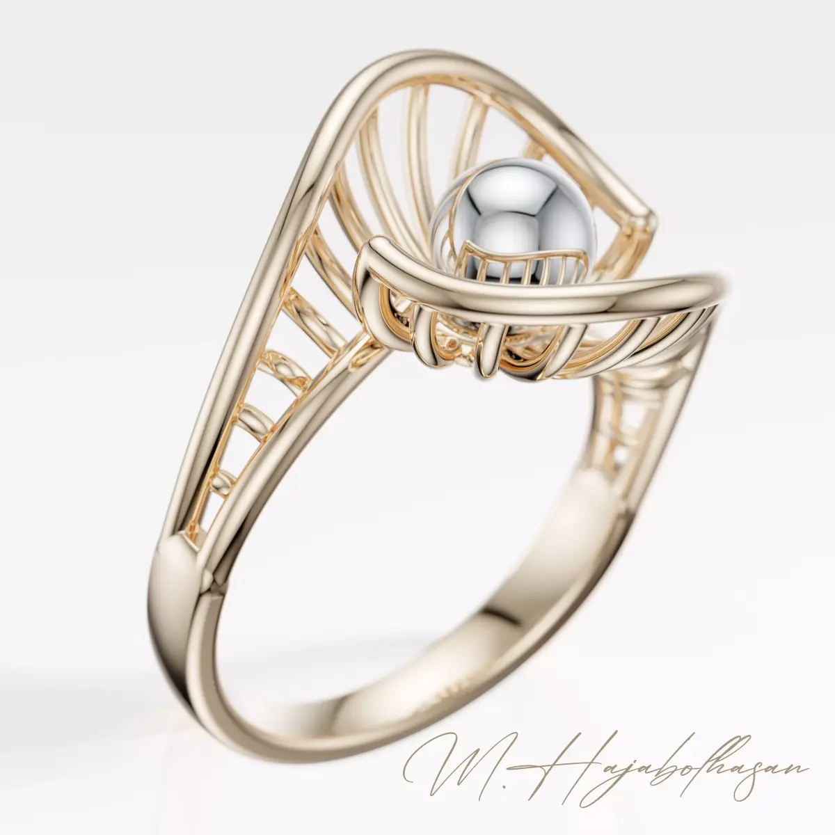 Experience the elegance of Seren Gold, a modern luxury ring that captures the essence of harmony and light.Designed by M.Hajabolhasan, this 3D printable jewelry piece blends the precision of parametric design with the softness of organic curves.