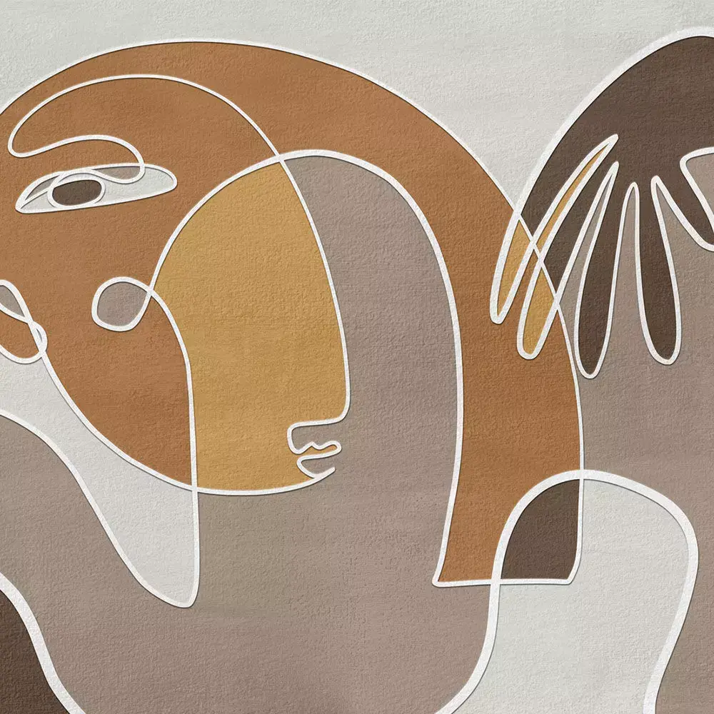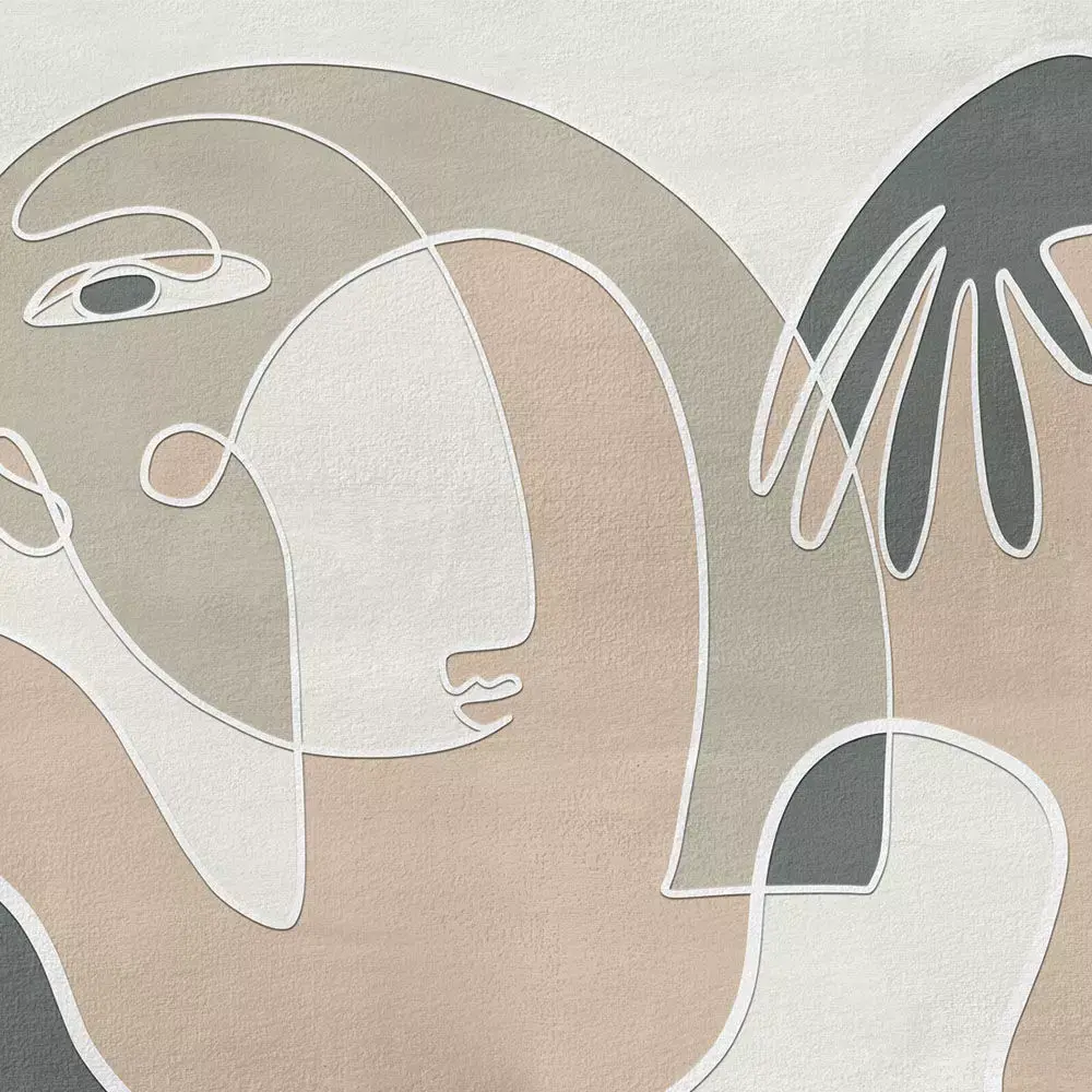 A calming abstract portrait drawn in a single flowing line with an elegant arch and hand motif, layered over soft plaster‑like textures for a refined, gallery feel in living rooms, bedrooms, spas, and boutique hotels . The composition balances negative space with generous curved forms so the mural reads beautifully from near and far without overpowering furniture or decor . Delivered in curated palettes—warm beige/caramel, mineral sage/olive, and clean outline on white—each version preserves crisp vector‑style edges and subtle grain for premium large‑format printing and CGI staging . Lifestyle preview demonstrates true‑to‑scale proportioning for feature walls and panel tiling in contemporary interiors .