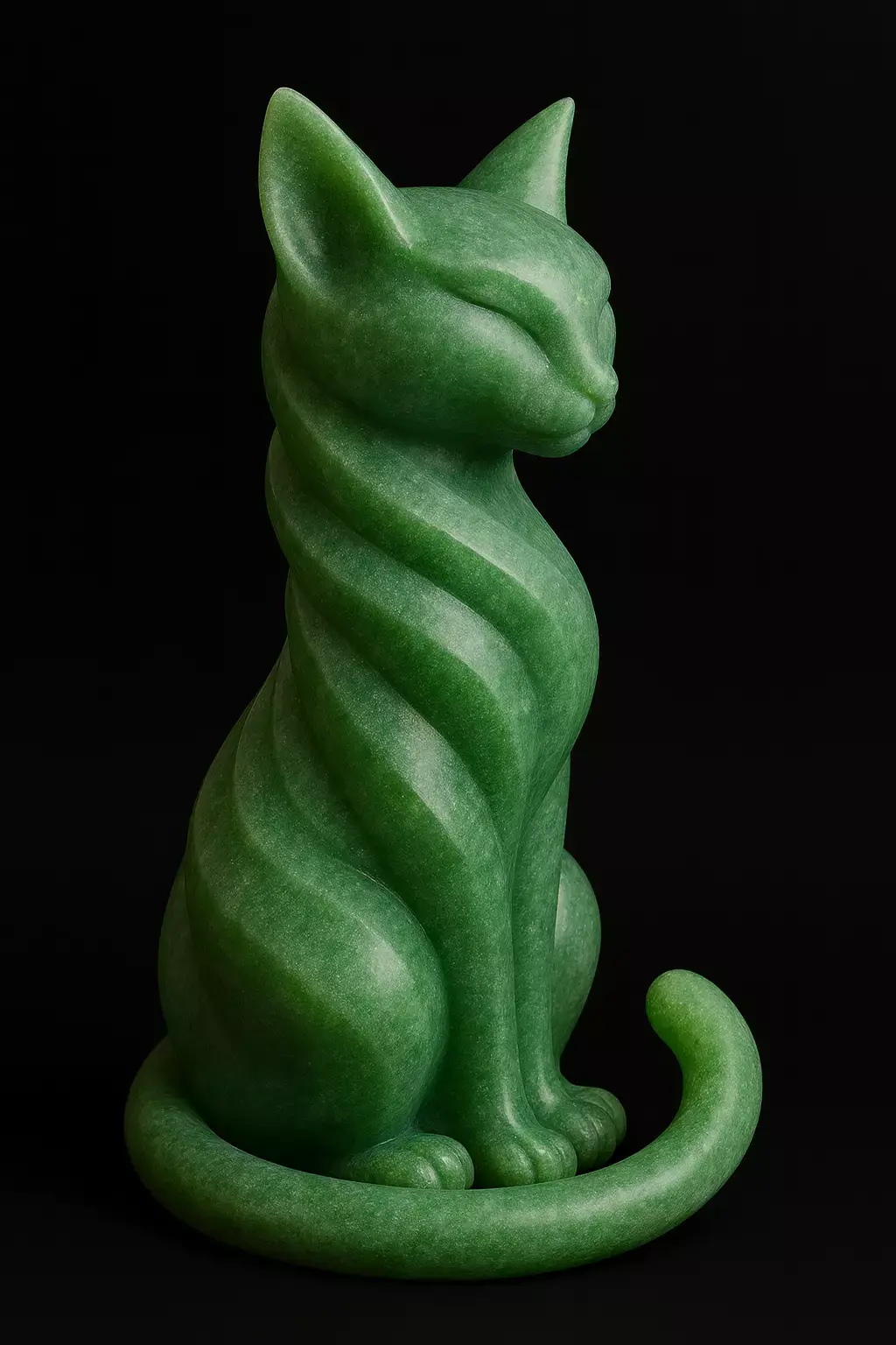 This elegant cat sculpture 3D model is inspired by handcrafted gemstone décor art, designed with smooth flowing curves and a calm, meditative posture.The model is showcased in Green Aventurine and Rose Quartz stone materials, making it perfect for luxury interiors, spiritual décor concepts, gemstone product visualizations, and e-commerce renders.