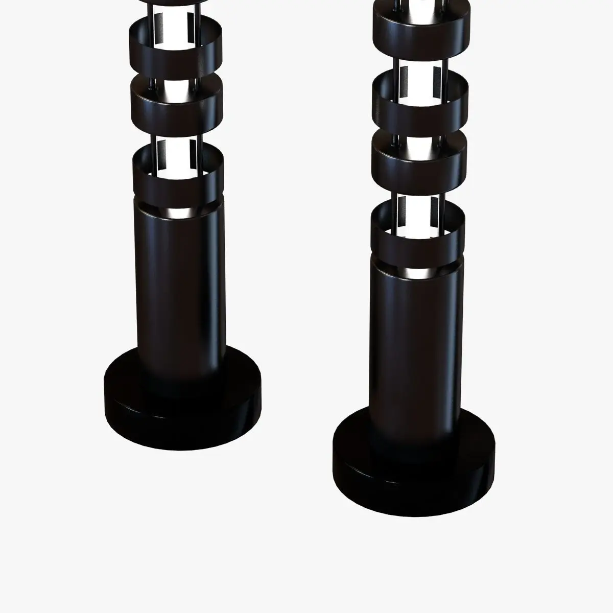In his Post Black Shapes period, Serge Mouille experimented with color and columns. With the Totem, he stacked cylindrical shades around a central lighting element. By alternating the shades up or down, the light's intensity is not uniform by designAvailable in black lacquer on wood platformHeight: 46' | 68'
