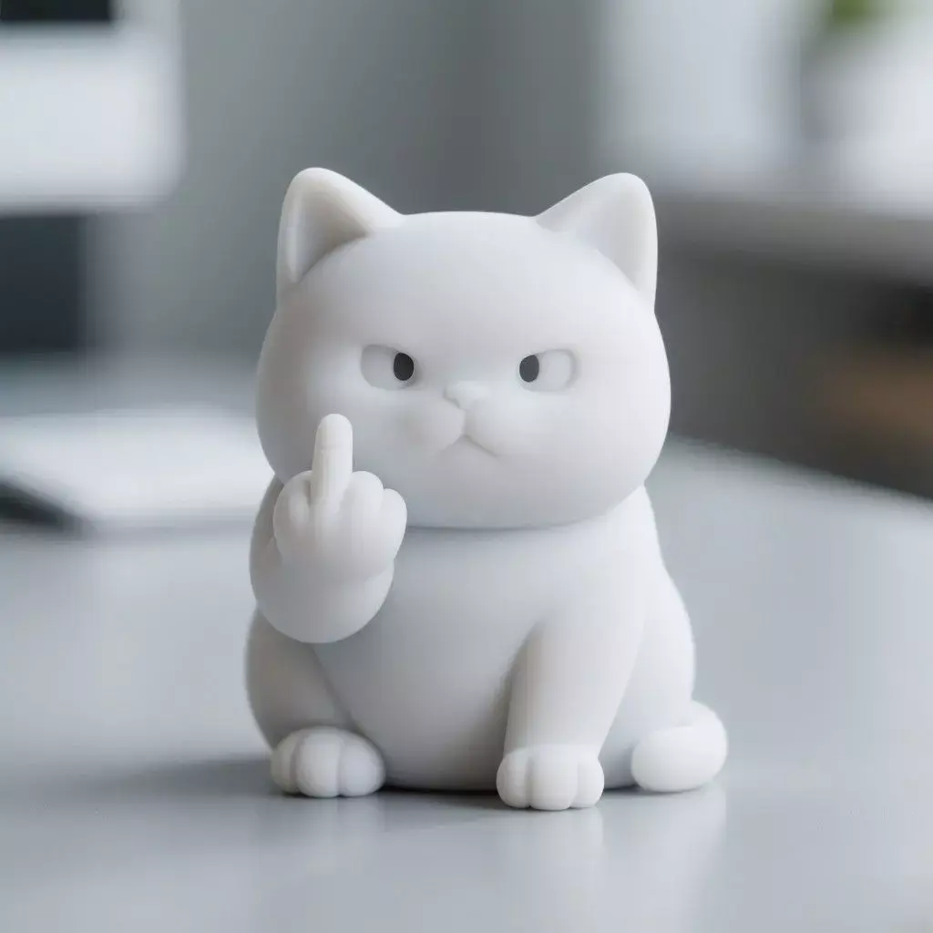 Design ConceptThe design features a chubby, serious-looking cat with a humorous twist — it is showing a middle finger. This playful yet cheeky design is sure to garner smiles and spark conversations.