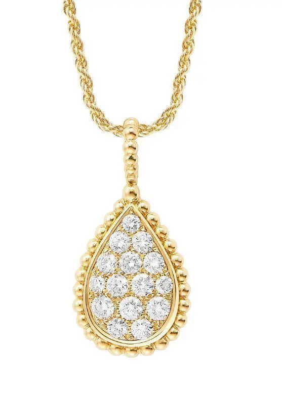 Created in 1968, Serpent Boheme went through the years and became one of the most iconic collection of the Maison. On its twisted chain, the head of the snake is symbolized by a drop set with diamonds and crowned with gold beads. The honeycomb design allows the light to pass through, giving the stones even more sparkle. In yellow gold, this long necklace embodies the subversive power of the Maison Boucheron.