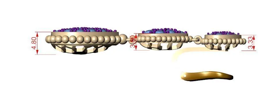 DimensionsTotal length of the 3 motifs: 41.5 mmMATERIALS62 round diamonds totaling 2.6 carats18K yellow gold