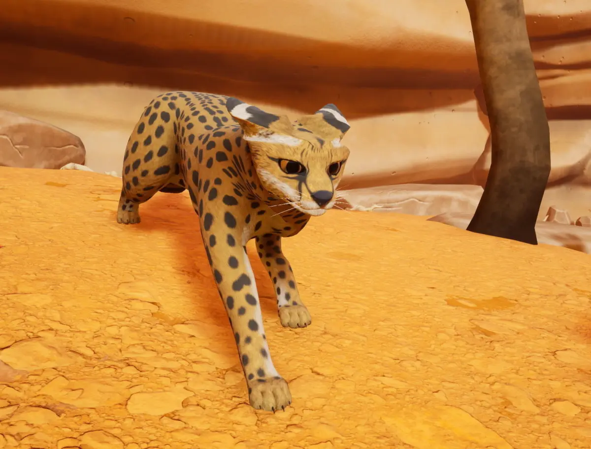 This is my model of a Serval cat native to sub-Saharan regions with 25 animations and poses. The modeling, rigging and animating were done with Blender. The textures and materials were created using Blender and the graphics editor Paint . net. The textures/materials sized to 4096x4096 and 1024x1024, have layers which can be customized and added with a node system. Unreal assets for the animations & model are avaliable as shown in the first preview image. (The desert map from the preview image is not included).