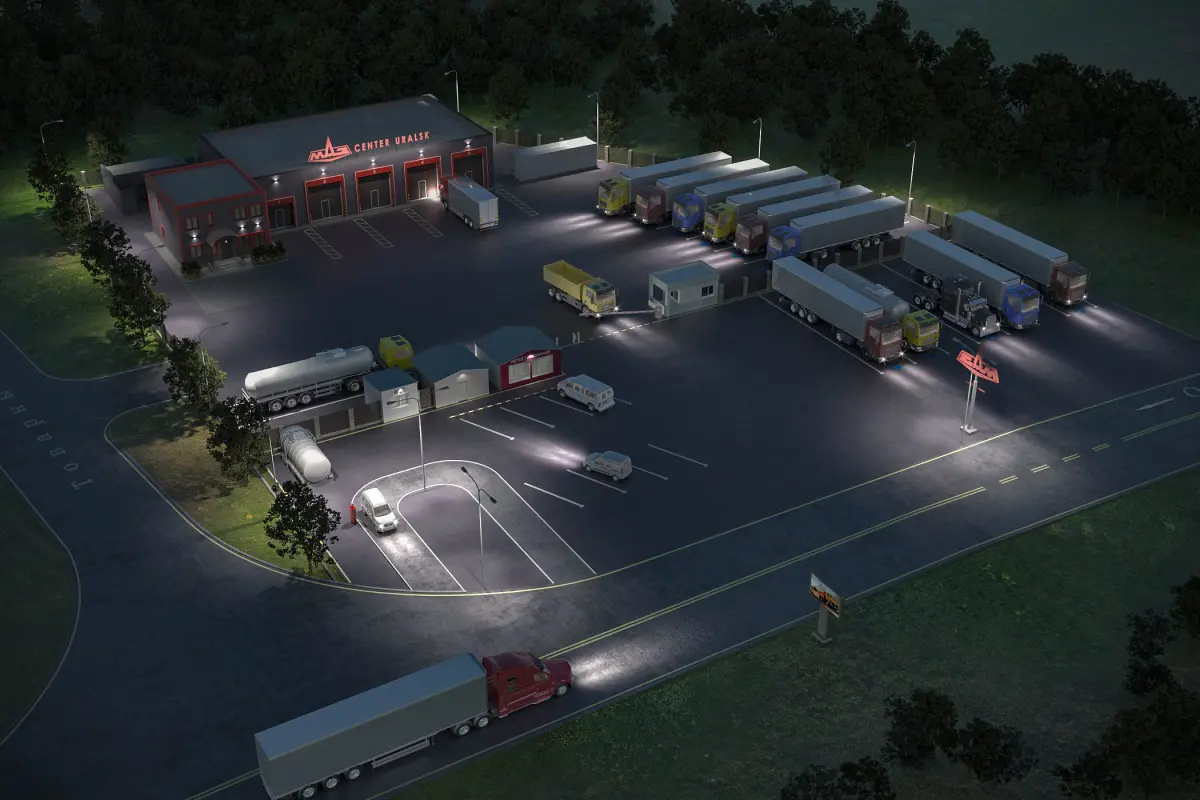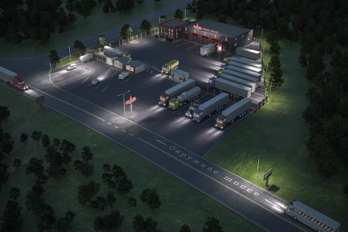 Camping for the sale and repair of trucks and heavy vehicles. For maximum relief, I used non-heavy models, instance objects and corona scatter.Some models are hidden. Click unhide all. Used corona scatter, corona proxy, and sky environment. Thank you!