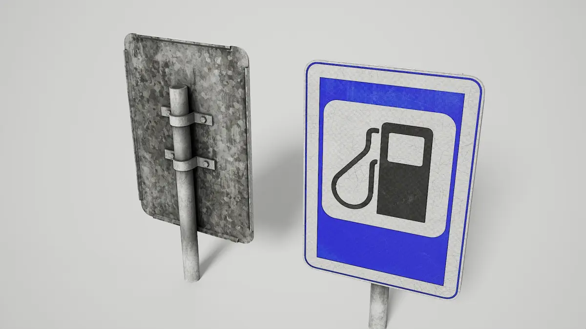 Service Road Signs Pack Game Ready Vol 2This asset pack includes 18 unique road service and facility signs inspired by European road standards. Each sign is individually modeled, low-poly, and fully optimized for real-time applications such as games, driving simulators, AR/VR, and architectural visualizations.