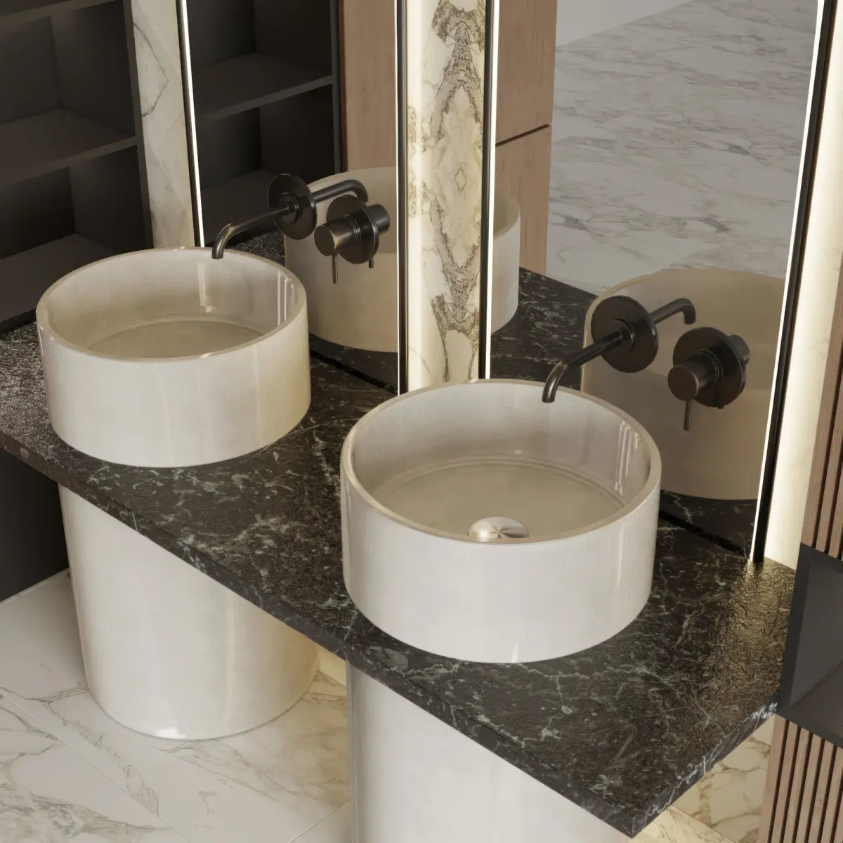 3d model: Service Set for use in the interior in the style of modern / minimalismDimensions: L300xW145x220cmIn the service there are: cabinets, faucet, sink, Mirror with backlight