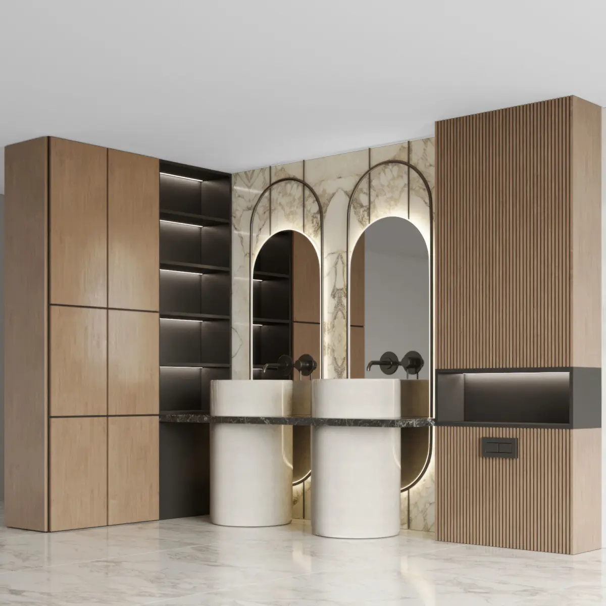 modeling in 3dmax 2018 and save as in max 2015 versionMaterials: wood, stone, metal brass, mdf, MirrorAll parts are separated and can be used.All parts are logically named to use easily.Do not include floor, ceilingAll items are UVW mapped.Max 2015 - vray6Max 2015 - corona 6obj, fbxpolicy:77064verts:77714Those who work in V-Ray versions lower than 3.1, be careful, in the materials in the BRDF section there is Microfaset GTR ( GGX ), if your version is older than 3.1, then the BRDF field will be empty. Choose Blinn, Phong or Ward - whatever suits you best.