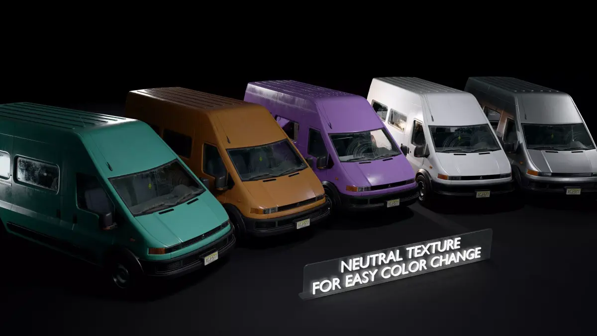 - 1 PBR 4K Material that covers the body paint (7x skins: Ambulance, Police, deliver (sendex), transport (VIP), plumber, destroyed, standard (little dirty, neutral colors)