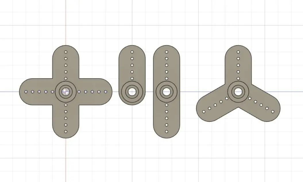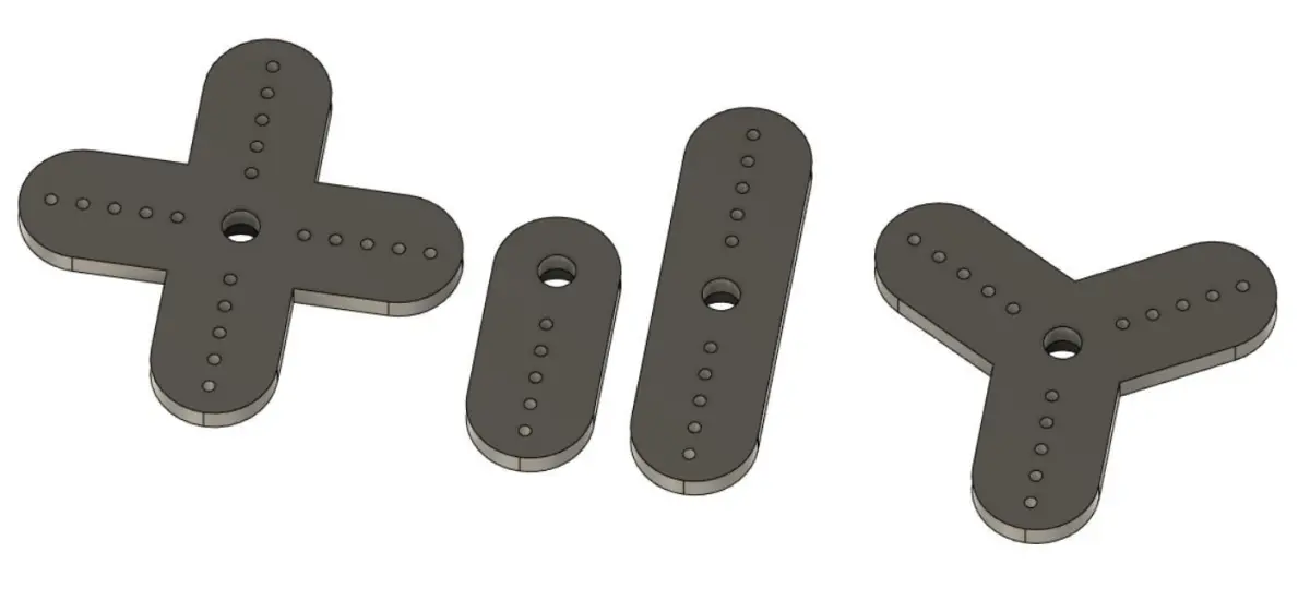 Super simple servo sticks for servos with 2.5mm shafts. Easily printable on any type of 3D printer and can be assembled with only a screw through the plastic piece.Type of sticks:-4 arms cross stick-3 arms cross stick-Double arms stick-Single arm stick