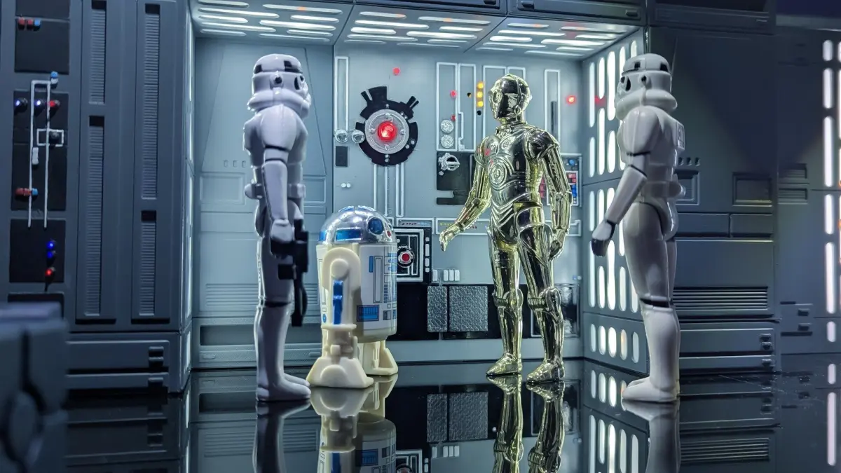 This very detailed little diorama is from the Star Wars Movie A New Hope when Luke, Han and Leia try to escape the Death Star Hangar. C3PO and R2 hide here and try to help there friends to escape. A nice little set that is easy to build.