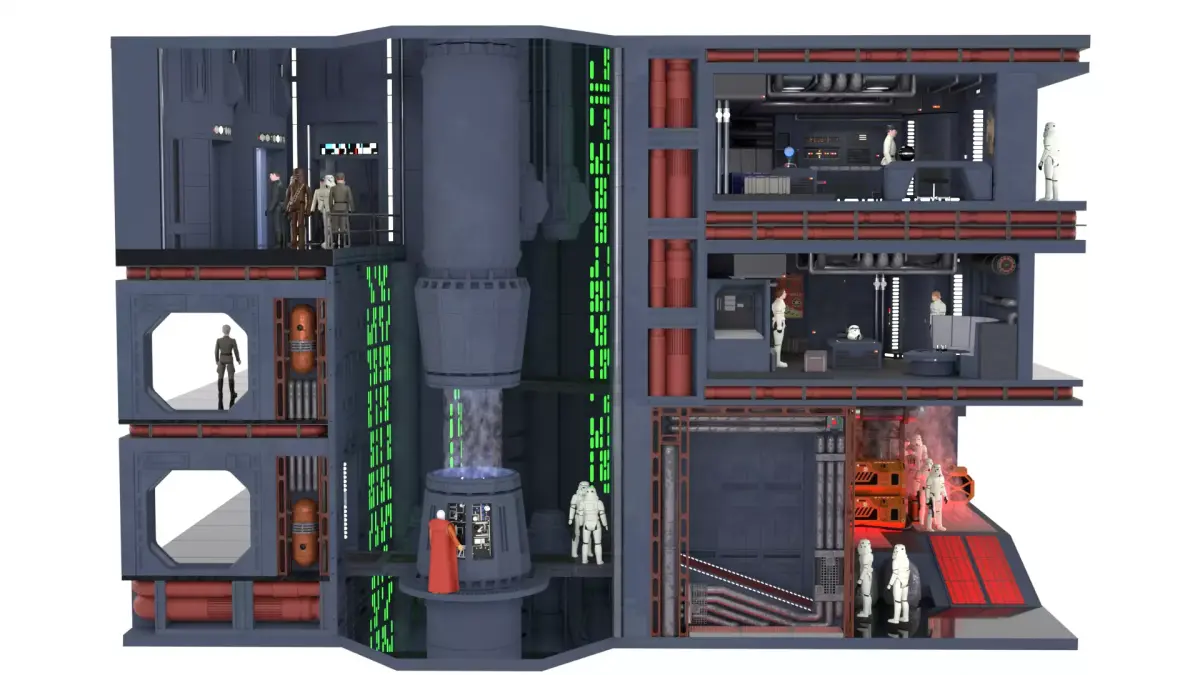 While designing Set 2 – the Death Star Shaft – we noticed some leftover space that felt more like an opportunity than a gap. In Rogue One, you see Kyber crystals being transported from the planet Jedha — but where do they all end up? We decided to create an engineering room that uses those crystals to power the Death Star’s massive superlaser.