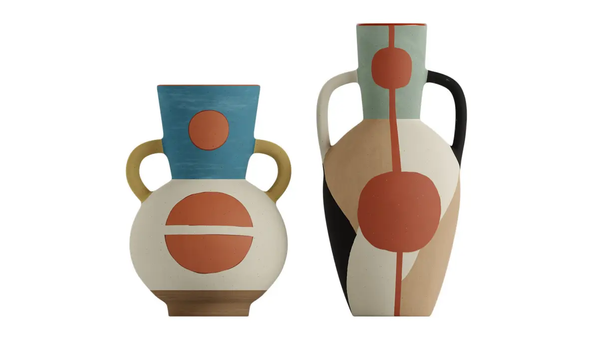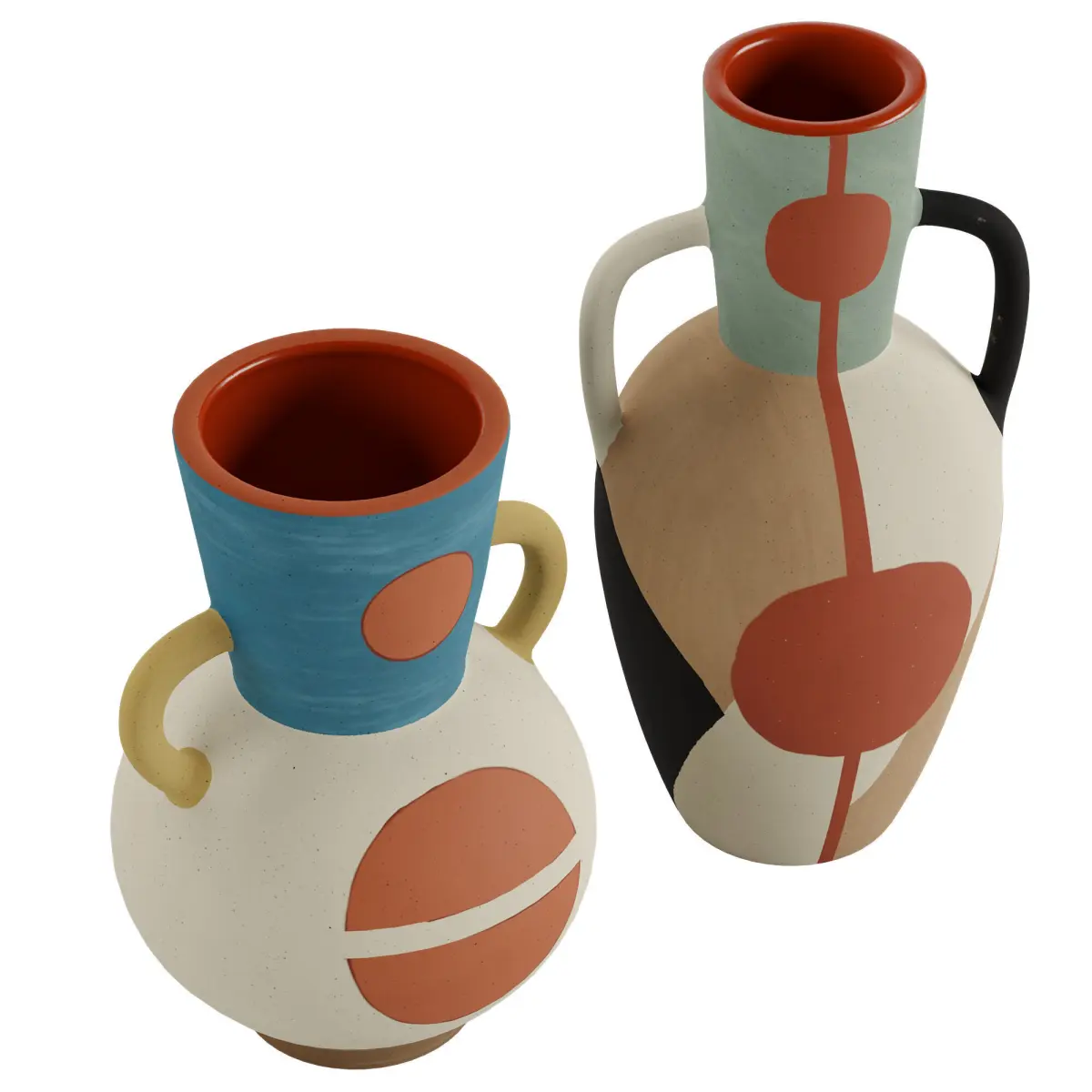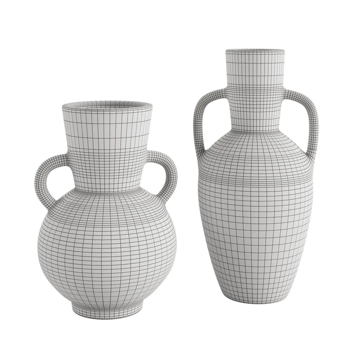 Set 2 Terracotta Ceramic Vase with Handles 3D model