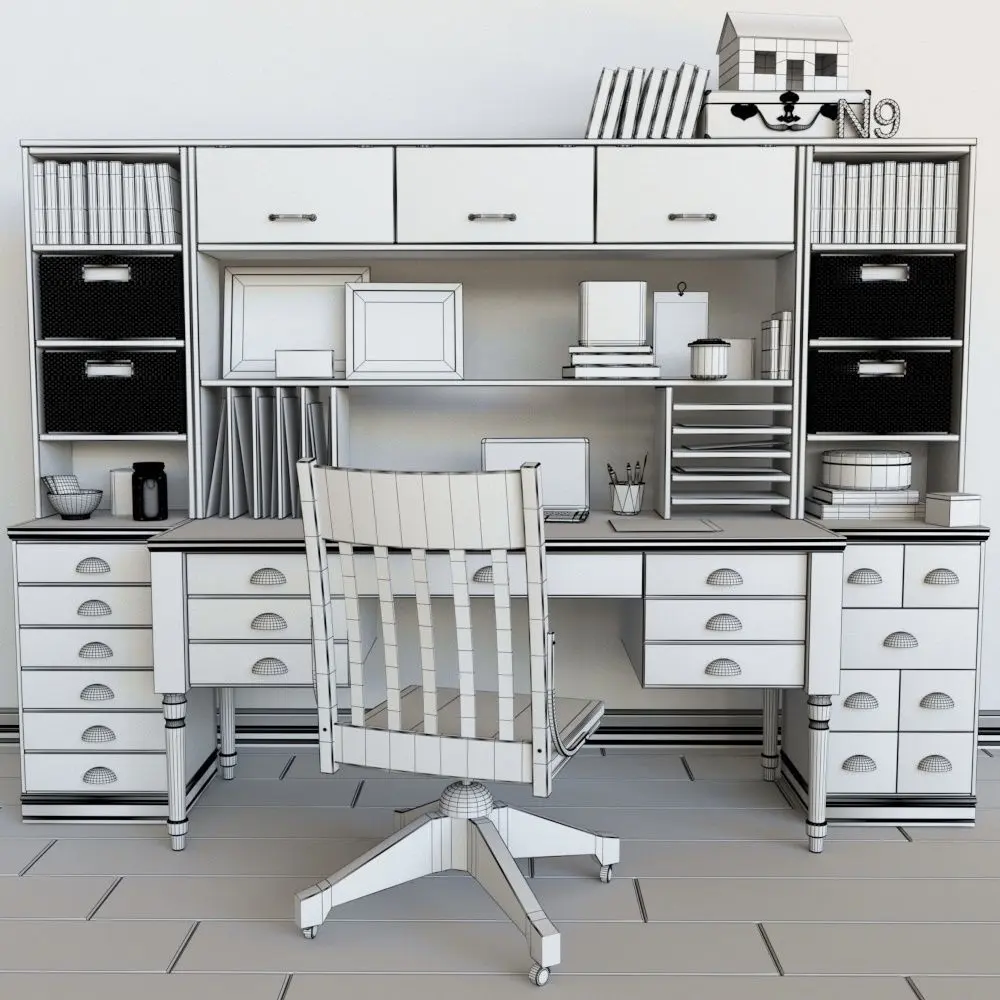 Set 23 desk with drawers and chair 3D model