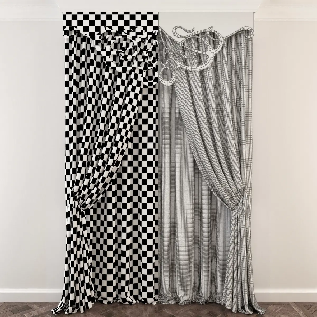 High quality, photorealistic 3D models of curtains.