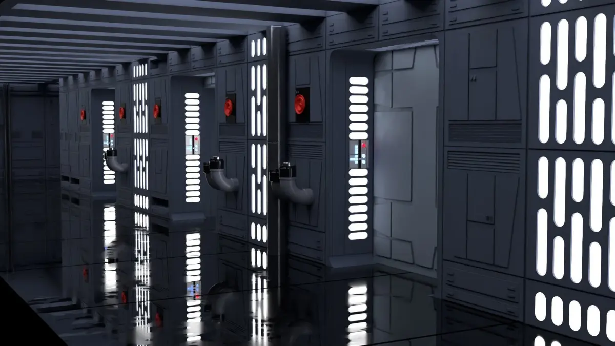 This very detailed hallway diorama resembles the hallway used in Star Wars Movie A New Hope hallway.Several action scenes are taken in this hallway. This set consists of both set 7b and 7b