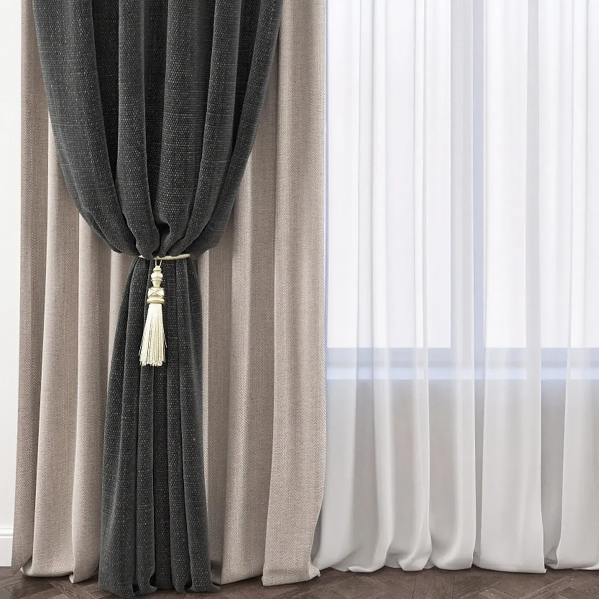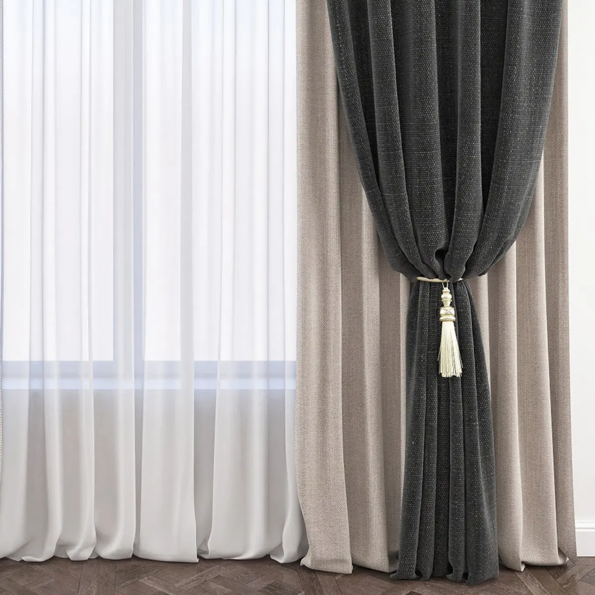 High quality, photorealistic 3D models of curtains.