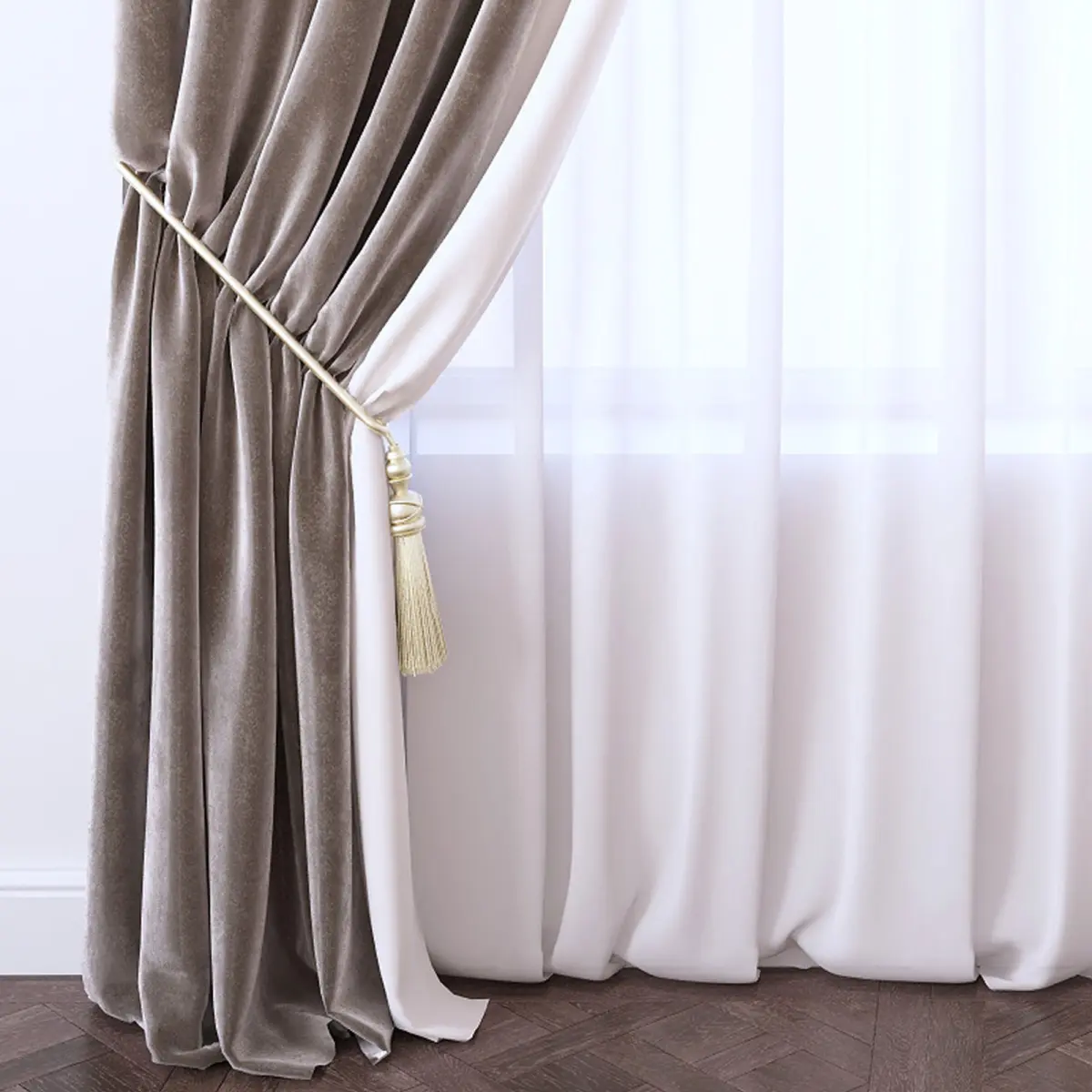 High quality, photorealistic 3D models of curtains.