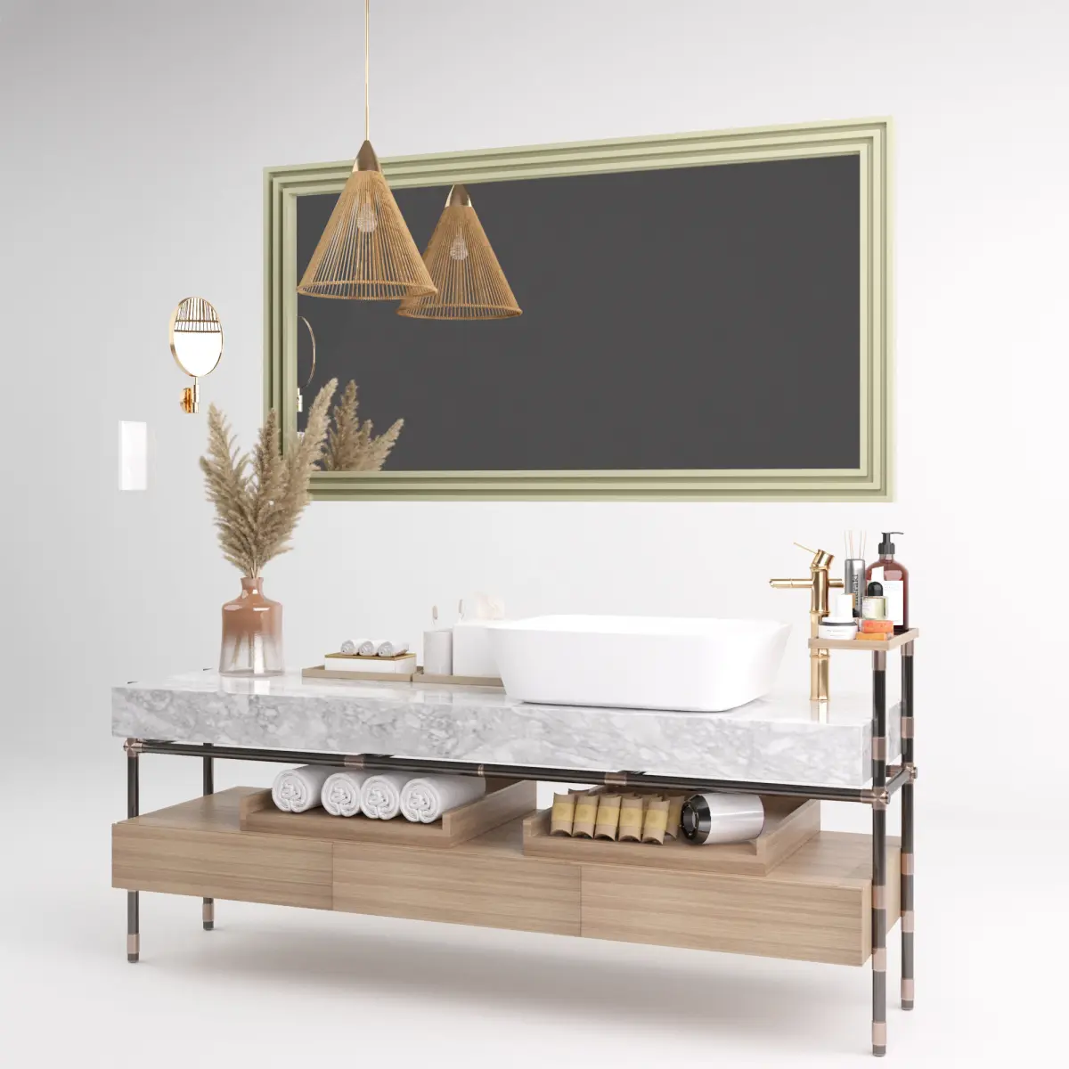 Set accessories bathroomCeiling light, mirror, outlet, lavabo, sink, accessories....