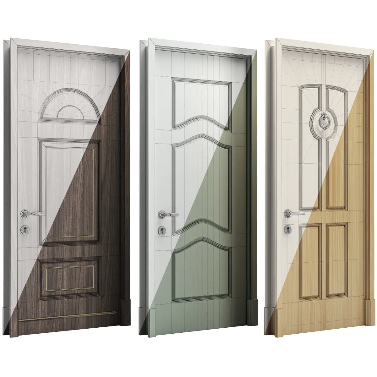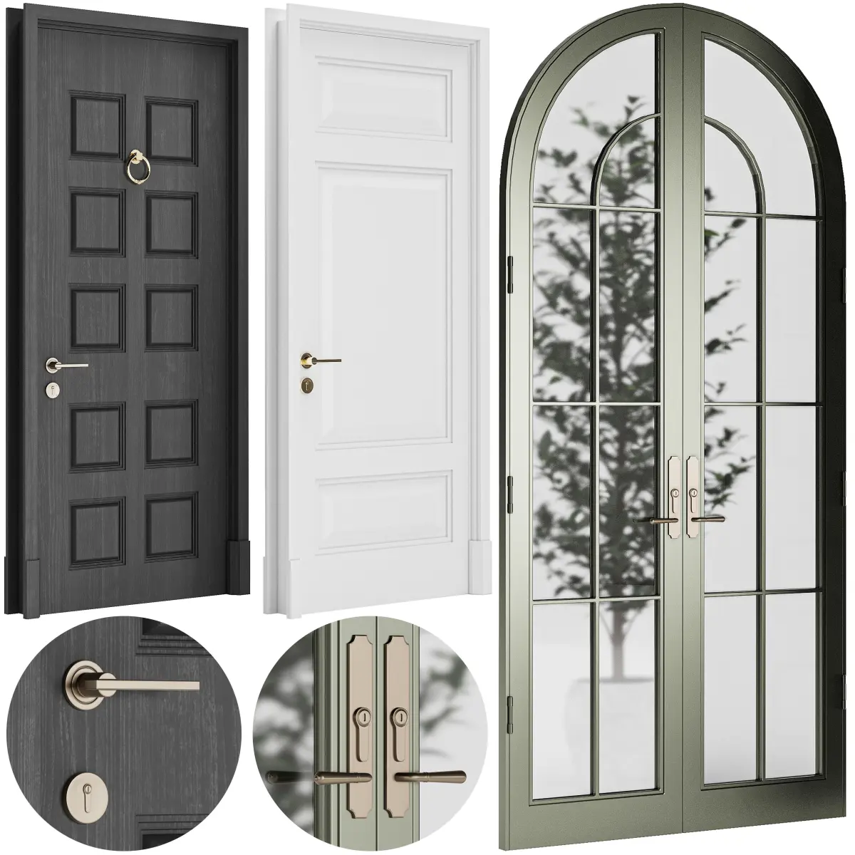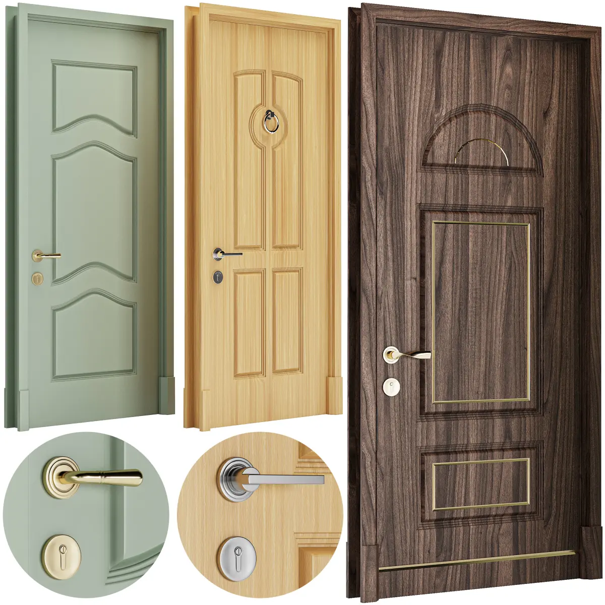 Set of six classic doors realistic for interiors and exteriors. The native file has been 3ds max 2018 ready to use with vray or conora render.