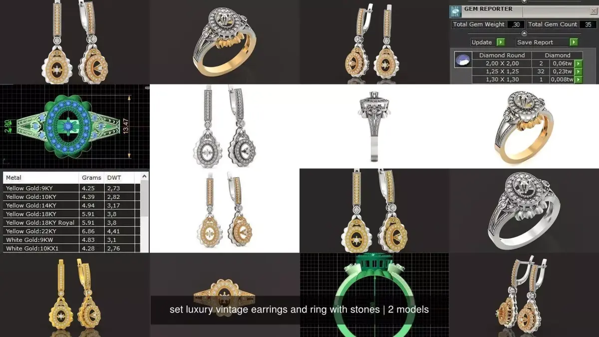 jewelry 3D modeling, creative design, cam/cad, rapid prototiping, rendering, animationluxury vintage-earrings with stones