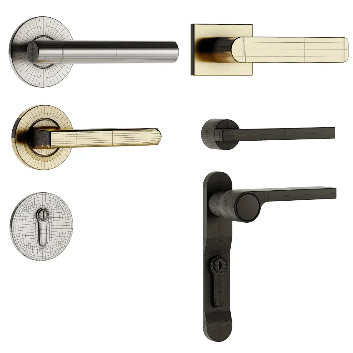 Parts of the 3D model:-Door-Handle-Lock-Fittings